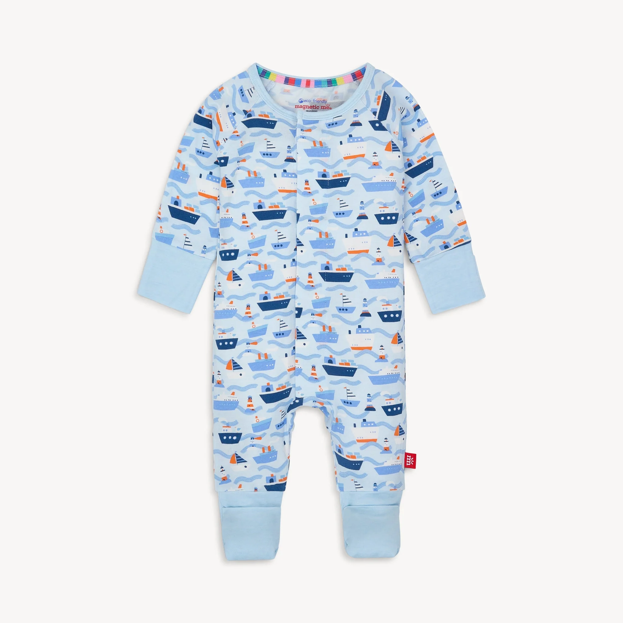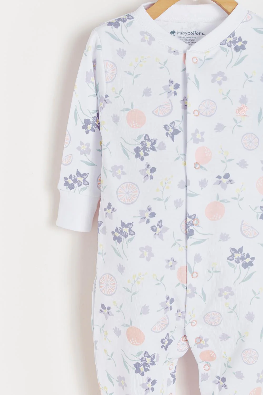 ¡Hermoso mameluco 100% de algodón pima peruano! ¡De la mejor calidad! De estampado, cuello redondo, con pie, manga larga y cierre de botones a presion en el frente y entrepierna para facilitar su puesta. Confeccionado en suave algodón pima, suave para el contacto con la piel del bebé.