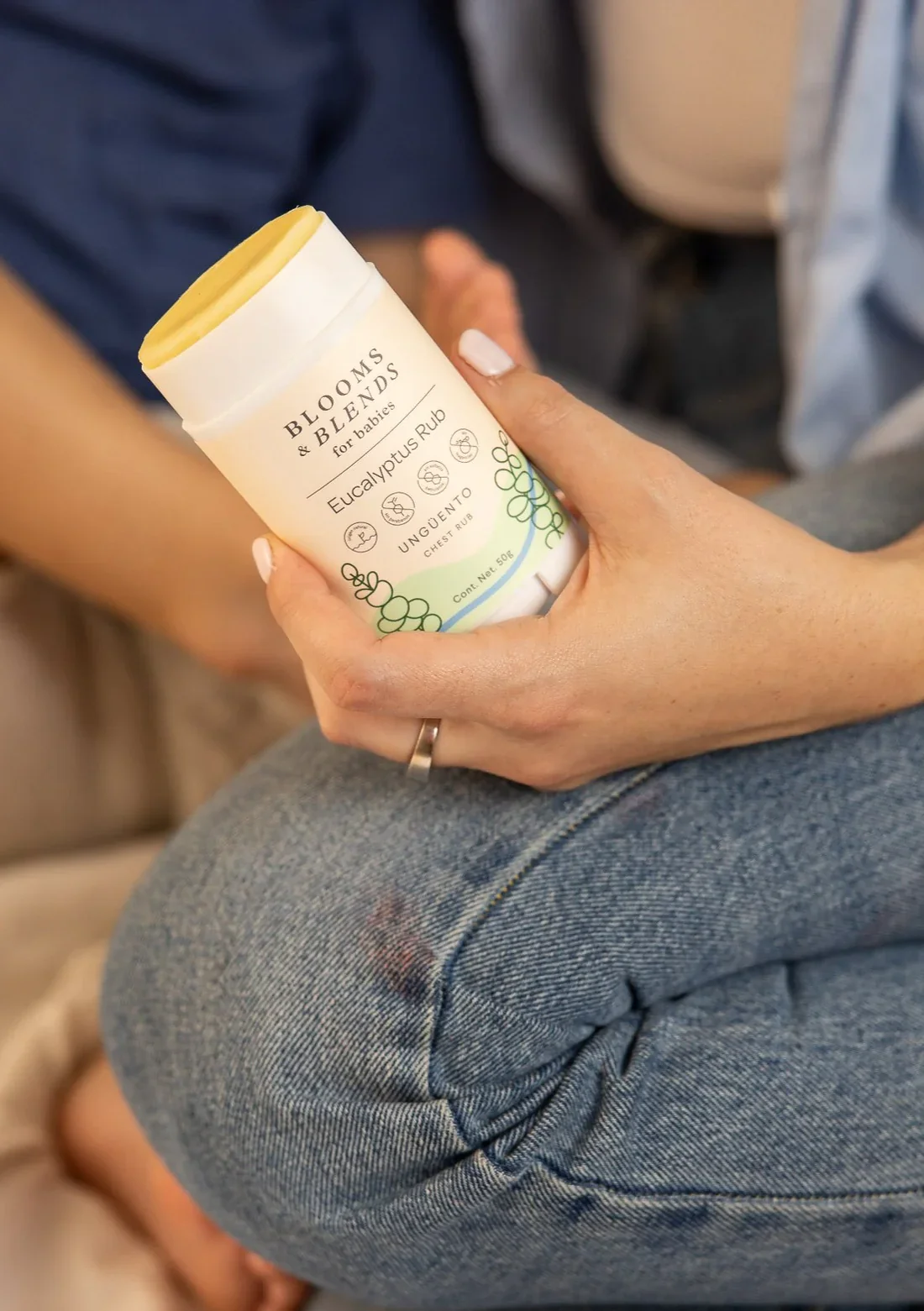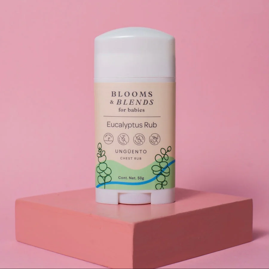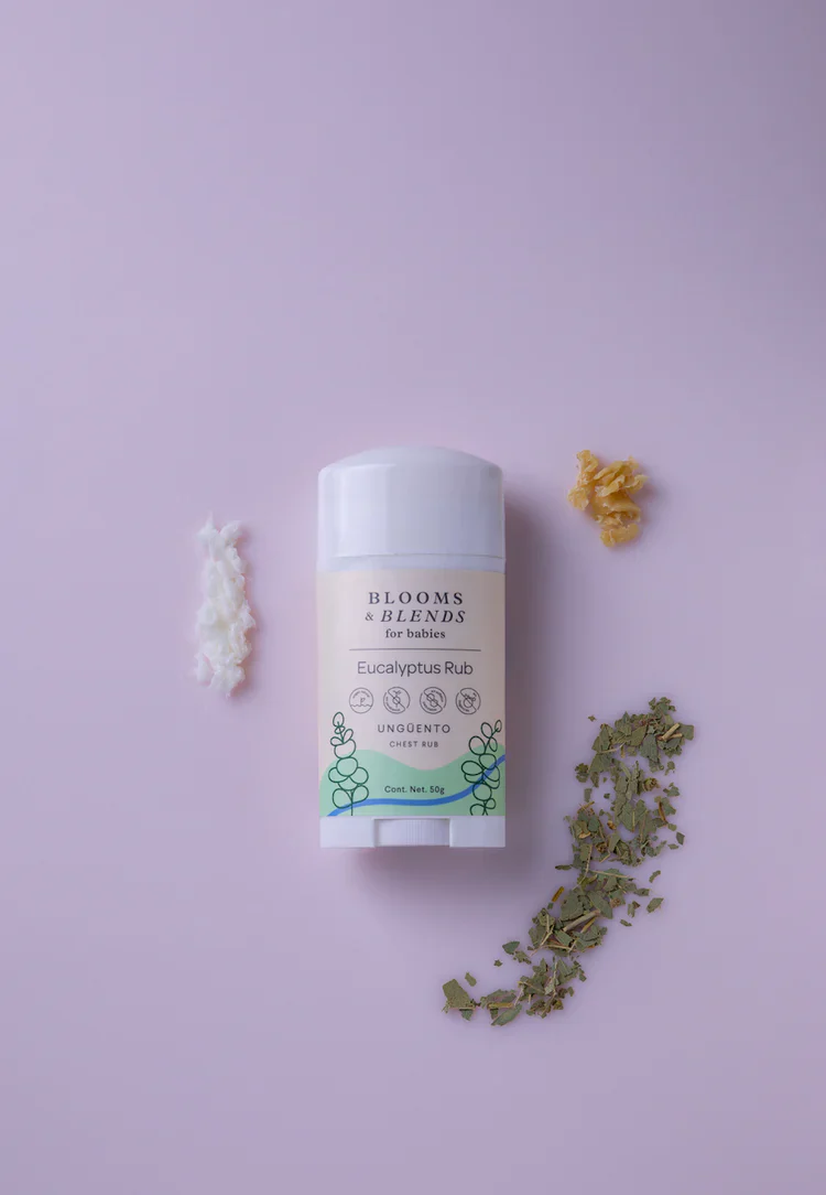 - Ingredientes: Cera de abeja, cera de soya, manteca de karité, manteca de cacao, aceite de coco, aceite de olivo infusionado con eucalipto (Eucalyptus globulus), aceite de aguacate, vitamina E (Tocoferol), alcohol cetilico, aceite esencial de eucalipto (Eucalyptus globulus, aceite esencial de menta (Mentha piperita), aceite esencial de romero (Rosmarinus officinalis), aceite esencial de enebro (Juniperus communies).