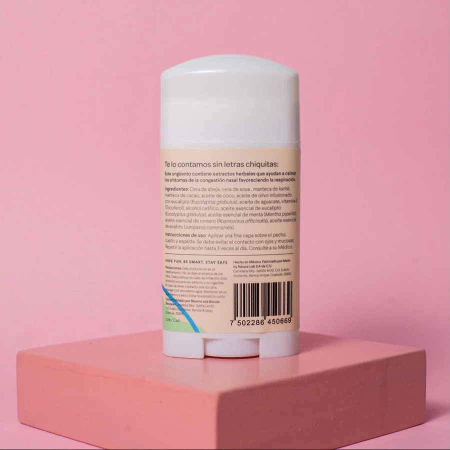 A soothing blend for a fast recovery!! Este ungüento contiene extractos herbales que ayudan a calmar los síntomas de la congestión nasal favoreciendo la respiración.