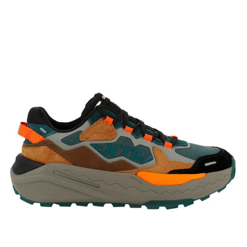 Descubre nuestras zapatillas deportivas bajas para hombre. El diseño multicapa combina texturas y materiales contrastantes para crear un efecto gráfico dinámico y audaz, mientras que el logotipo extragrande añade un toque distintivo de estilo urbano. Parte superior de tejido técnico y ante: Una combinación impactante que aporta actitud y carácter a la vez que ofrece mayor estabilidad y sujeción. Cuello acolchado: Garantiza una comodidad excepcional durante todo el día. Estas zapatillas fusionan rendimiento, tendencia y energía de espíritu libre en una silueta poderosa.