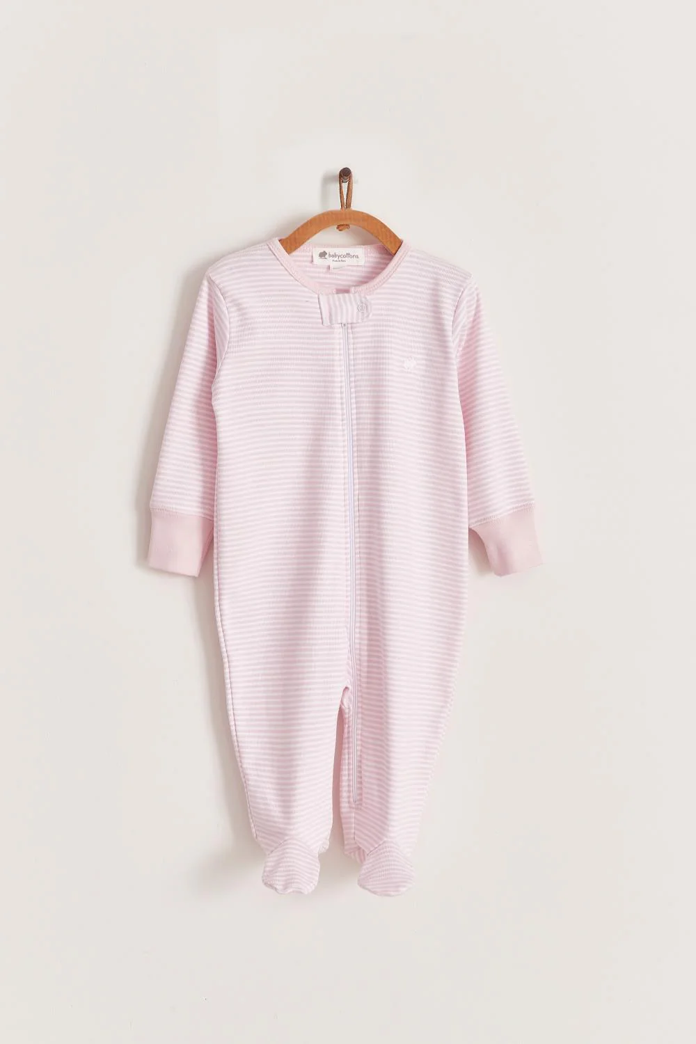 ¡Divino y básico mameluco estampado con pie de algodón Pima! De cuello redondo, manga larga, cierre de zíper delantero desde el cuello hasta los pies para facilitar su puesta.
