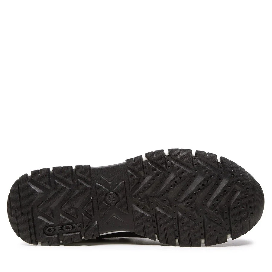 Transpiración de la suela gracias al sistema ideado por Geox. Máxima impermeabilidad y transpiración para una protección óptima incluso con lluvia intensa. Protección contra el frío gracias a un nivel óptimo de aislamiento térmico. Calzado ligero para una marcha siempre confortable durante todo el día. Fácil de regular gracias al cierre con cordones. La plantilla desmontable es práctica e higiénica.