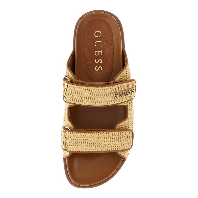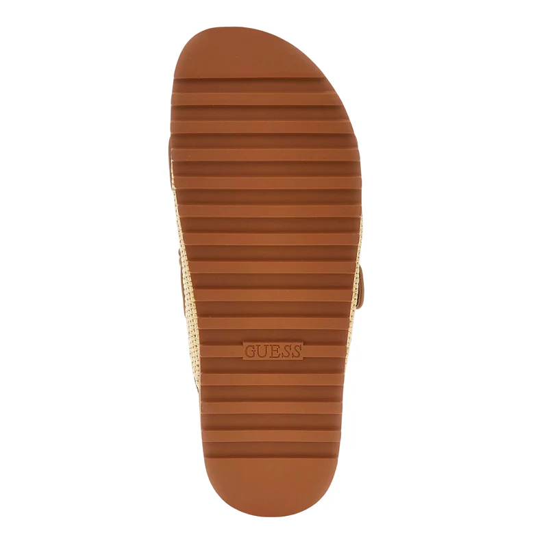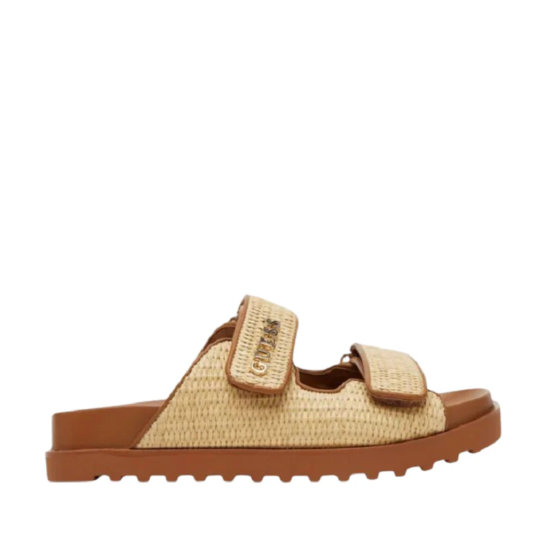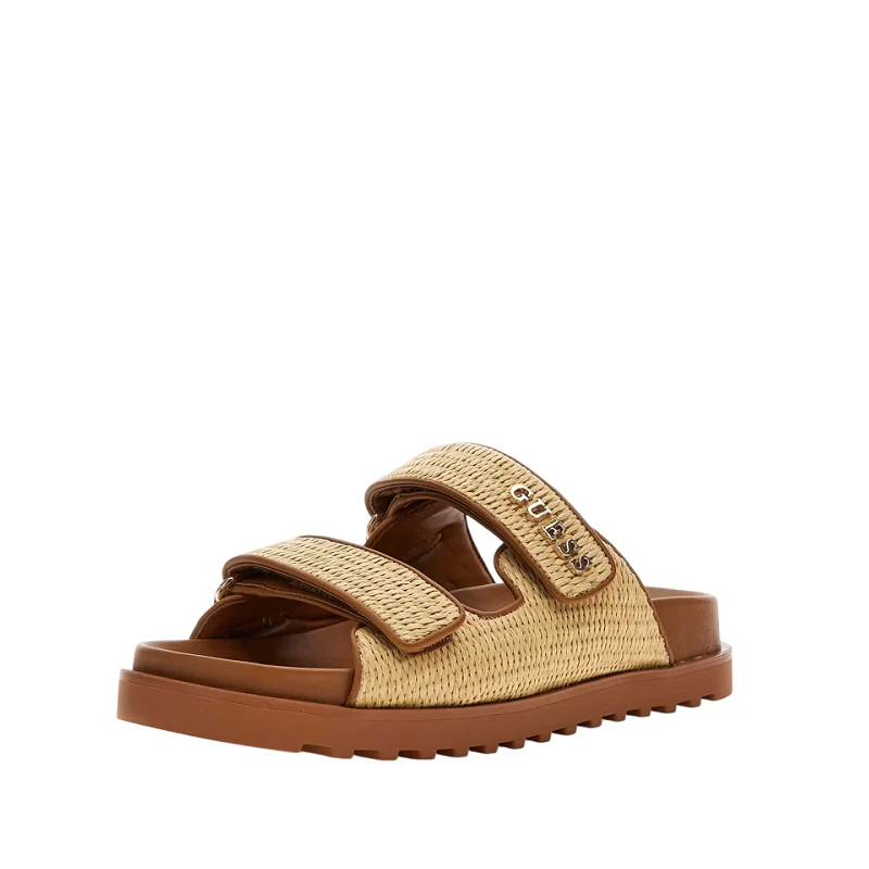 Estas sandalias Guess Fadelize combinan estilo y comodidad con su diseño en rafia y punta redonda. Cuentan con un cierre frontal de doble tira que asegura un ajuste perfecto. La suela de goma termoplástica de 1,7 cm de altura ofrece durabilidad y confort en cada paso. Detalles como la inscripción del logotipo en la suela y el metal frontal aportan un toque distintivo. La plantilla y el forro interior de tejido garantizan una sensación agradable al usar. La empella está fabricada en 100% poliuretano, asegurando resistencia y fácil mantenimiento.