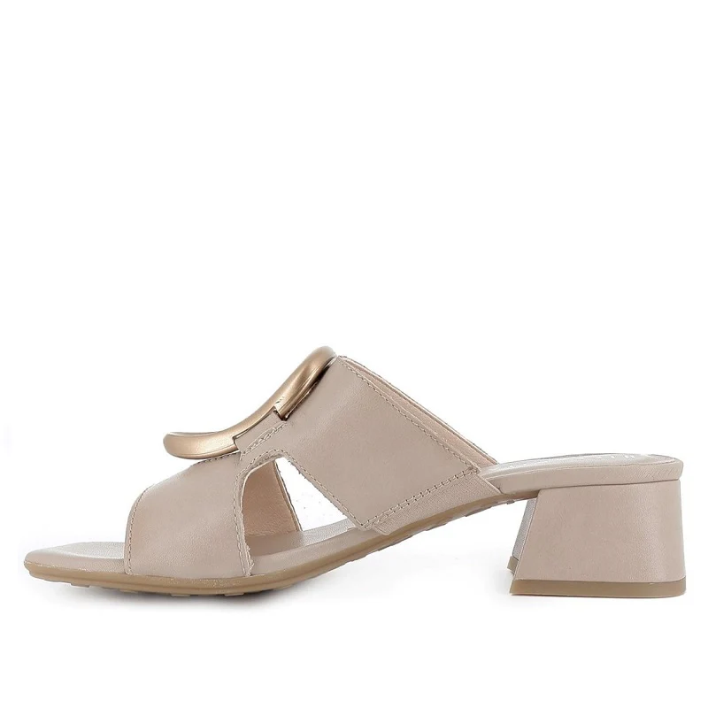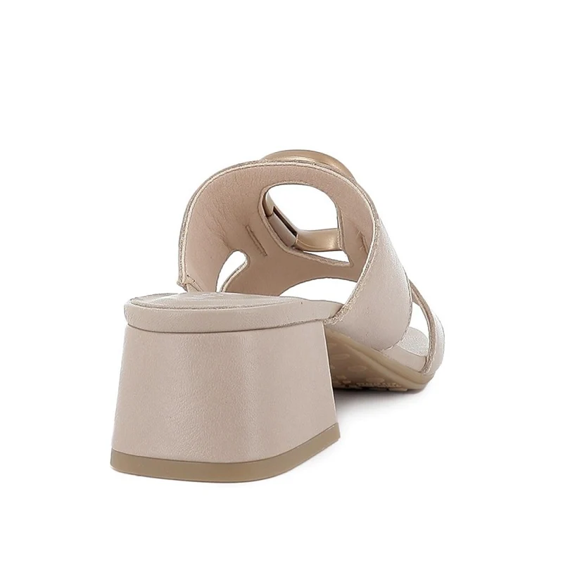 Sandalia tipo zueco en piel con hebilla ovalada irregular y puntera semicuadrada, diseñada para ofrecer estilo y comodidad. Su tacón medio y plantilla acolchada garantizan un uso confortable durante todo el día. Perfectas para cualquier ocasión, estas sandalias son versátiles y fáciles de combinar. Fabricadas 100% en España por HISPANITAS, una marca comprometida con la sostenibilidad y el comercio local, que promueve una moda responsable y un impacto social positivo.