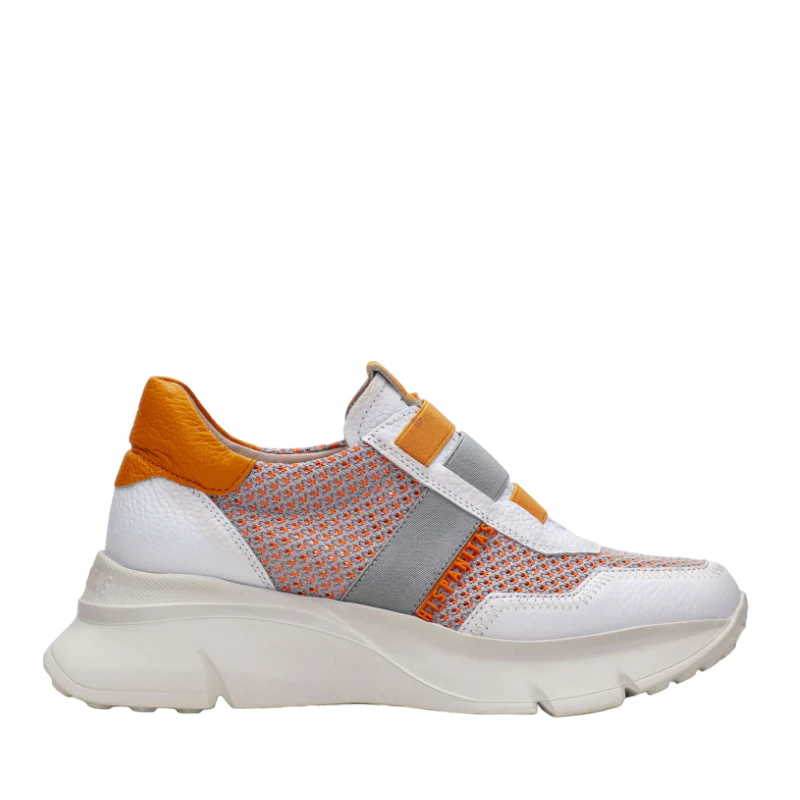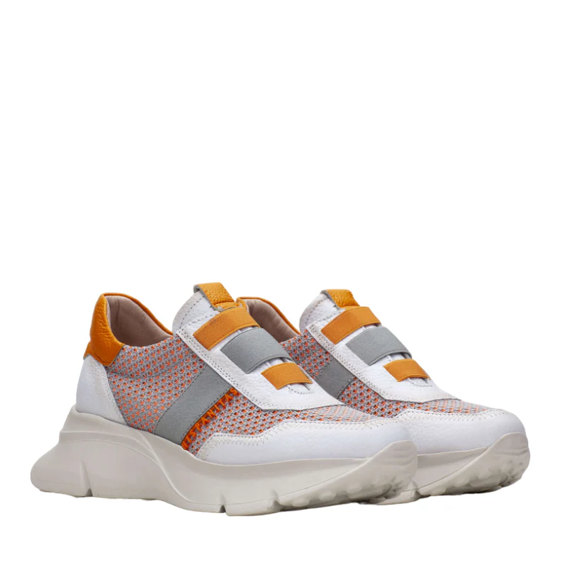 Deportiva con suela volumen y elaborada en combinación de materiales. Diseño de rejilla y cierre de elásticos. Este zapato incorpora la tecnología TRIFLOW, amortigua cada paso gracias a su triple almohadillado, y además cuenta con plantilla extraíble. Altura: 5 cm.