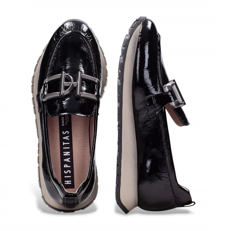 Descubre los mocasines Hispanitas HI254386, una fusión perfecta de elegancia y confort. Fabricados en charol negro brillante con un diseño moderno de doble hebilla y suela deportiva, estos mocasines ofrecen un estilo versátil ideal para el día a día o eventos especiales. Su comodidad excepcional y el toque distintivo de Hispanitas los convierten en un imprescindible para la mujer contemporánea. Suela extremadamente suave, debido a la tecnología en la suela Hispanitas “triflow gel system”. Combínalos con looks casuales o más formales para un toque sofisticado y chic.