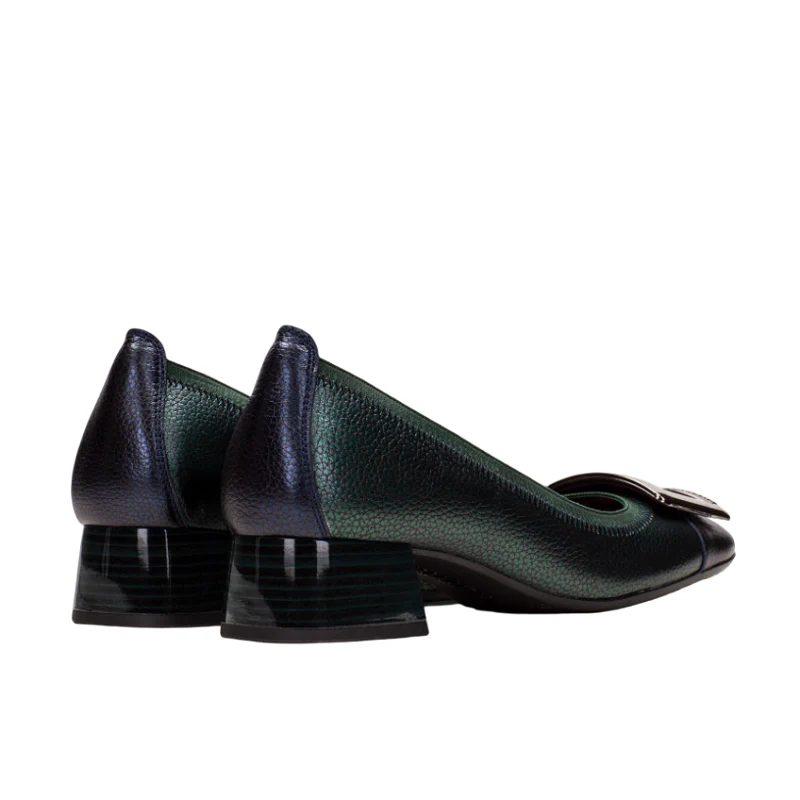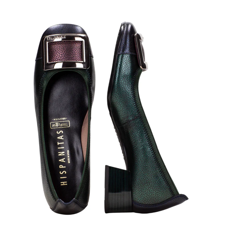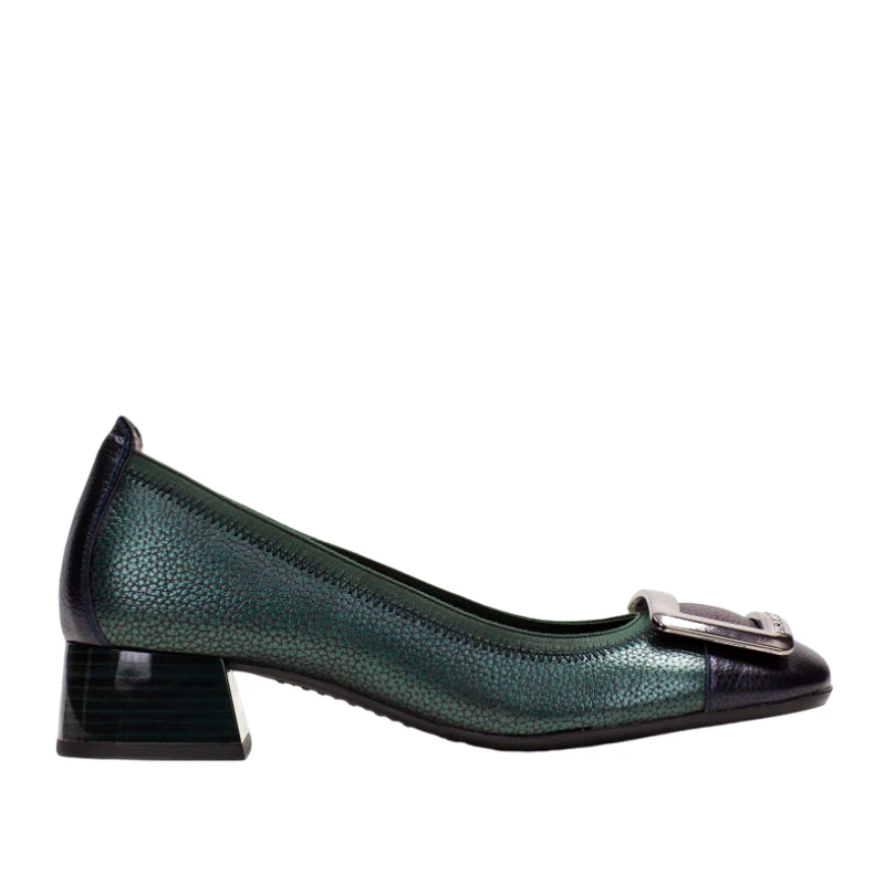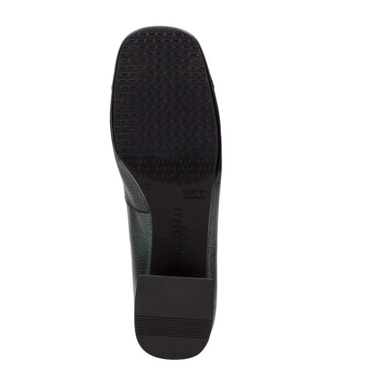 Bailarina elaborada en piel con tacón bloque de 3 cm. Ribete elástico y adornode maxihebilla en la puntera. Este zapato incorpora la tecnología Triflow que amortigua cada paso aportando flexibilidad y confort en la pisada, gracias a su triple almohadillado.