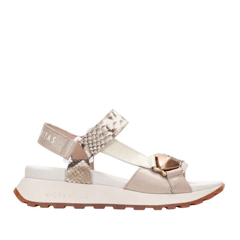 La sandalia deportiva Hispanitas maui chv253896 51029 TAUPE combina estilo urbano y moderno con su punta redondeada y tiras de piel. Con tecnología Triflow y un piso de 4,5 cm, brinda un excelente agarre antideslizante y triple almohadillado para absorber impactos y aportar comodidad al caminar. Perfecta para cualquier ocasión. Altura: 4,5 cm.