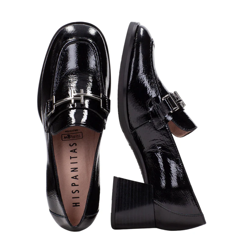 Mocasín con tacón bloque de 5 cm y adorno de cadena con isotipo doble «H» en el empeine. Este zapato incorpora la tecnología Triflow, un triple almohadillado que aporta un efecto acolchado al caminar.