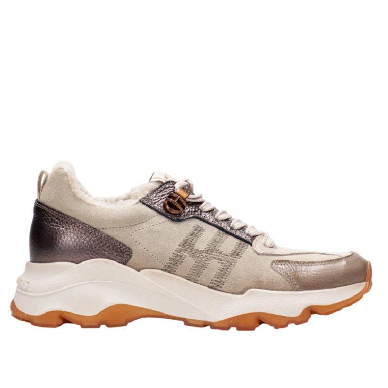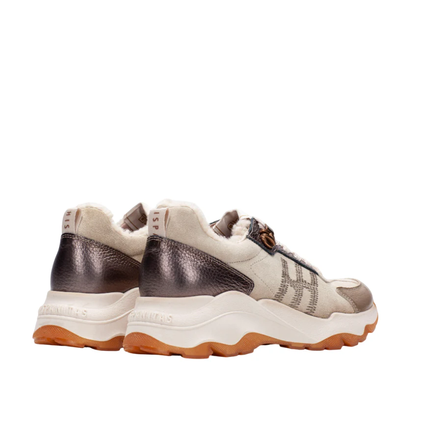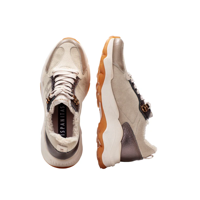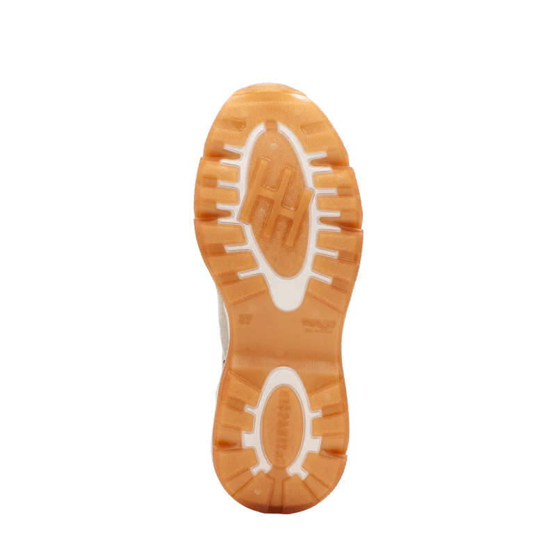 Deportivo acordonado estilo hiking. Piso de 4 cm de goma termoplástica. Elaborado en piel. Forro interior de origen no animal, 100% transpirable y termorregulador. Tecnología Triflow: triple almohadillado en la zona de la pisada que aporta un efecto acolchado al caminar. Incorpora plantilla anatómica extraíble. Los detalles discretos en la legüenta rinden homenaje al 35 aniversario de la marca: «since 1990».