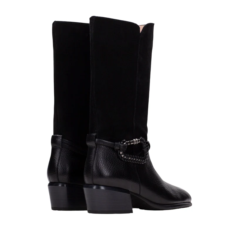 Las BOTAS DE TACÓN de estilo COWBOY de la marca HISPANITAS en color Negro están diseñadas para ofrecer un equilibrio entre funcionalidad y diseño. El modelo PHI254298 incorpora características propias de este tipo de calzado, aportando un acabado que resalta su identidad. Confeccionadas en cuero y pensadas para Mujer, proporcionan sujeción y resistencia, adaptándose a diferentes combinaciones y ocasiones.