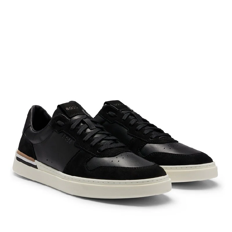 Depotivas de hombre de la marca HUgo Boss con la suela tipo cupsole, fabricadas en piel y ante con detalle de raya de la marca en la suela. EL cierre es con cordones y están totalmente forradas.