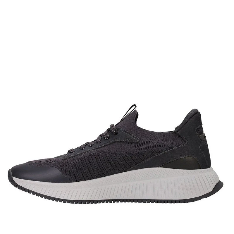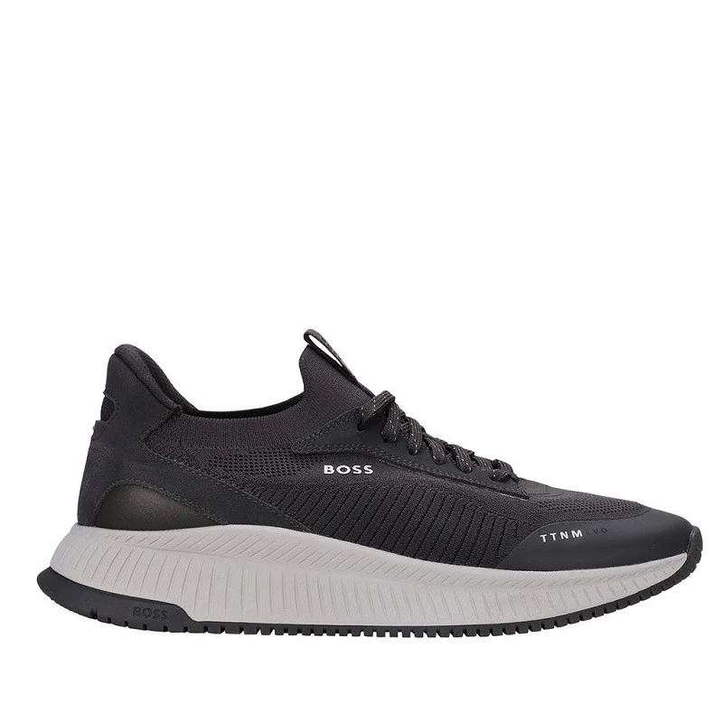 Zapatillas de estilo calcetín con parte superior tejida, marca de contraste y suela de espiga de Boss.