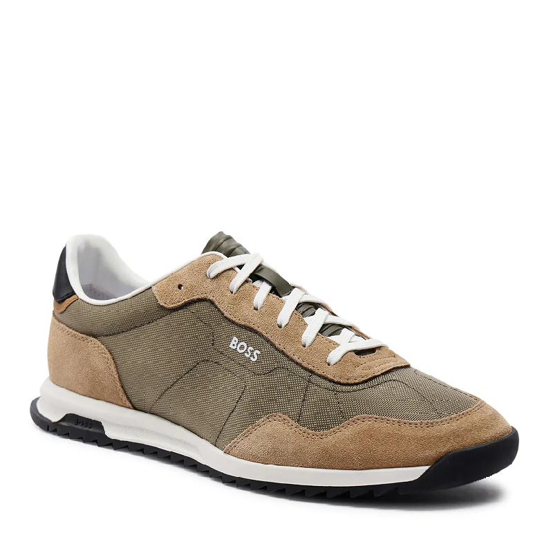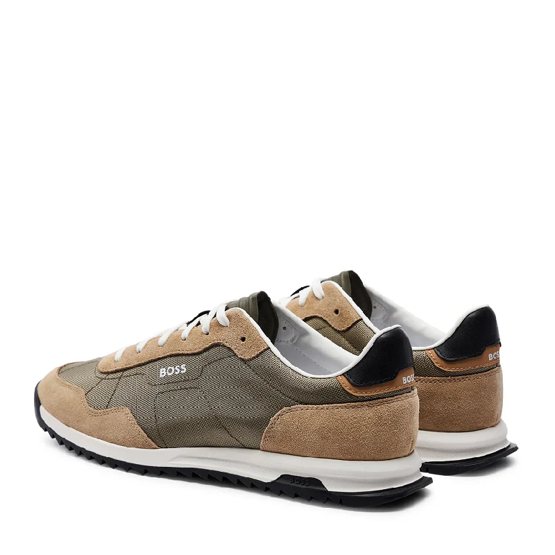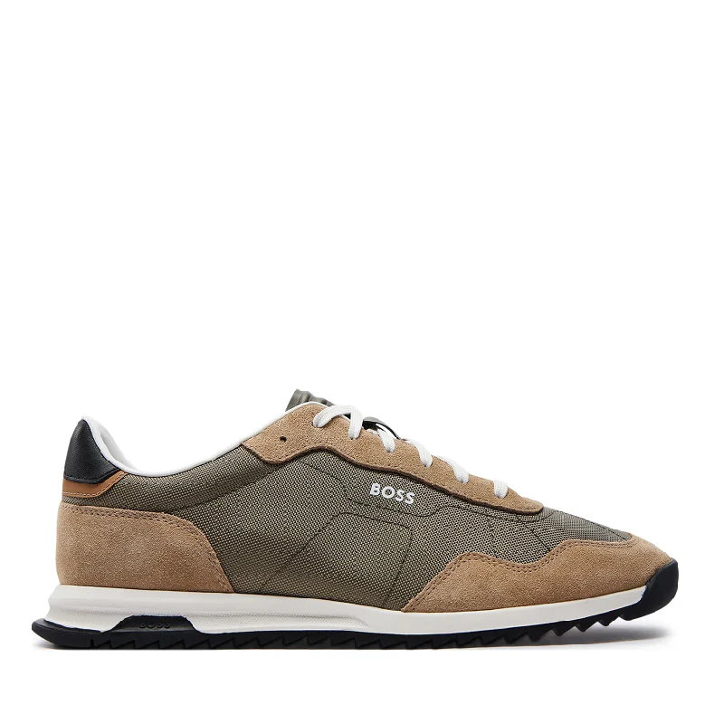 Deportivas de hombre de estilo runner de la marca Hugo Boss, diseñadas en mezcla de materiales, como malla de panal de abeja, con detalles de la marca por todo el modelo. El cierre es con cordones y están forradas parcialmente.