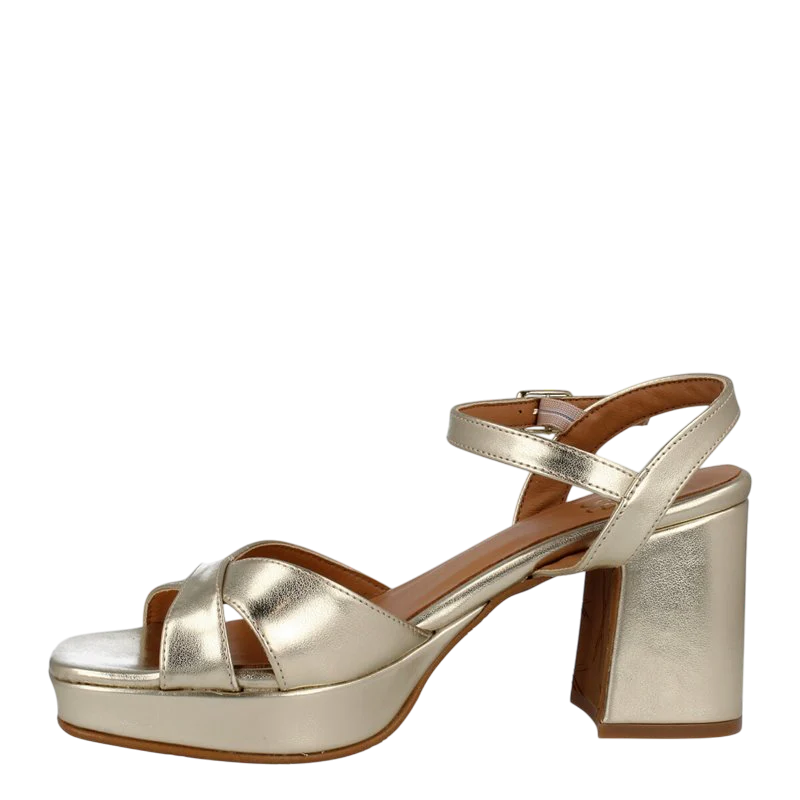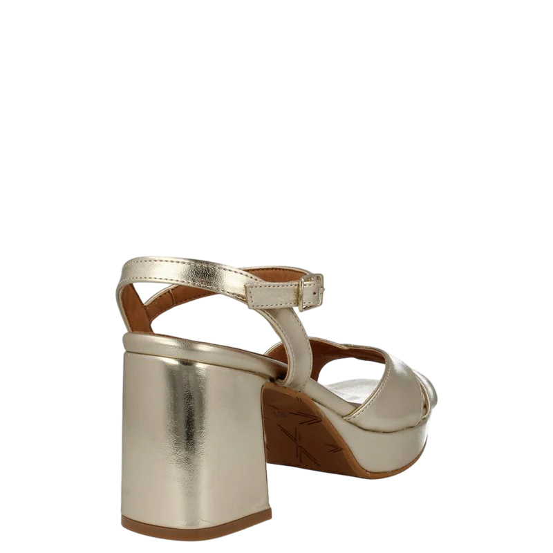 La sandalia de piel Itse 2427 Clever color dorado ofrece un estilo moderno con su plataforma y tacón grueso de 8cms. El cierre con hebilla garantiza un ajuste cómodo y seguro, mientras que su suela de goma brinda una gran durabilidad. Disfruta de comodidad y estilo con esta sofisticada sandalia.