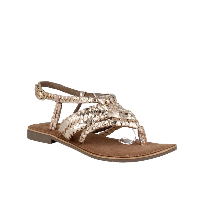 Sandalia de la marca ITSE modelo BERLANDIERA IF6300 en color ORO. Sandalia con tiras cruzadas de piel y hebilla en el tobillo por un ajuste seguro. Como sabemos que la comodidad es importante, estas sandalias también tienen una suela de goma que te proporcionará la estabilidad que necesitas para andar todo el día sin cansarte. Estas sandalias son el accesorio perfecto para un look cómodo, audaz pero sofisticado a la vez.