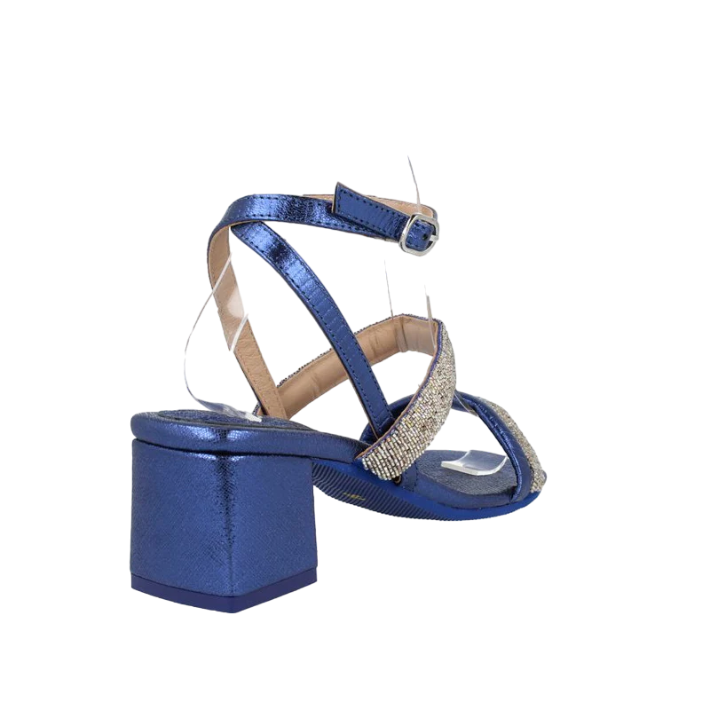 Sandalía de la marca ITSE modelo JOCELYN 13620 en color AZUL. Sandalia de tacón medio y plantilla embautada para maxima comodidad. Diseño con detalles de brillantes en las tiras del empeine y hebilla en el tobillo para un ajuste óptimo. Perfectas para ocasiones especiales donde quieres lucir radiante y al mismo tiempo sentirte cómoda durante todo el día.