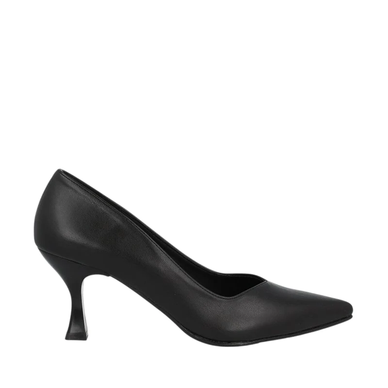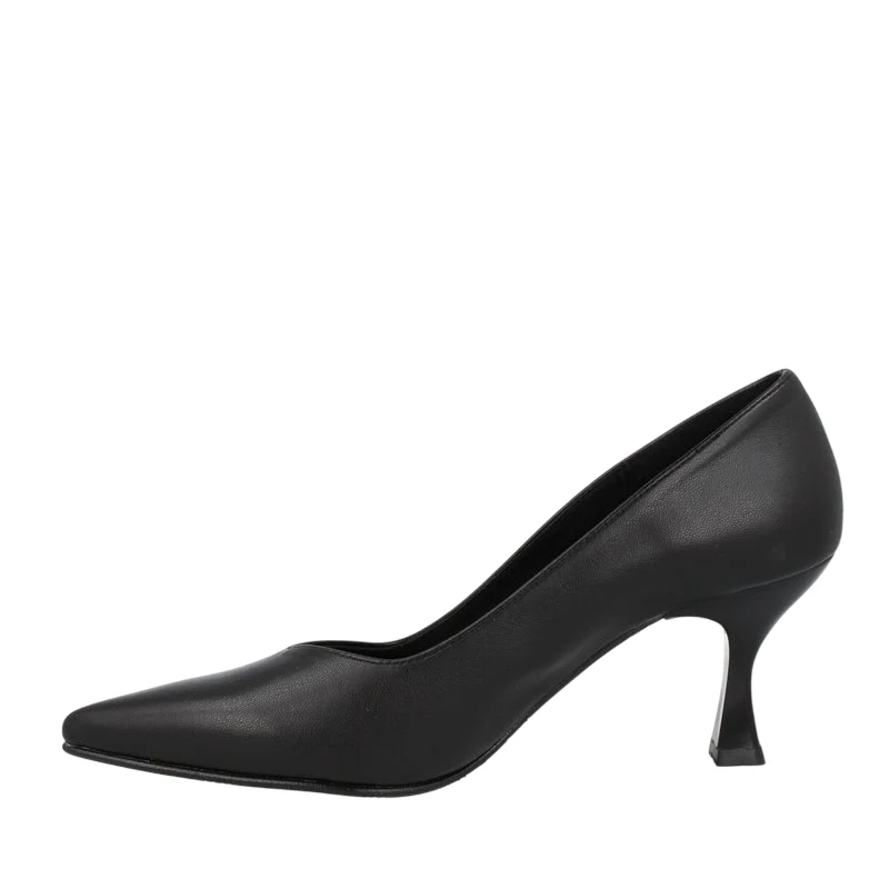 Un clásico para todo. Este modelo de salón en piel negra con tacón de 7 centímetros en forma de embudo, será tu aliado para un montón de looks.