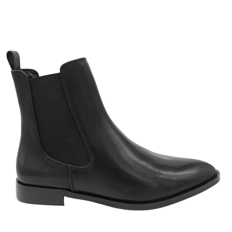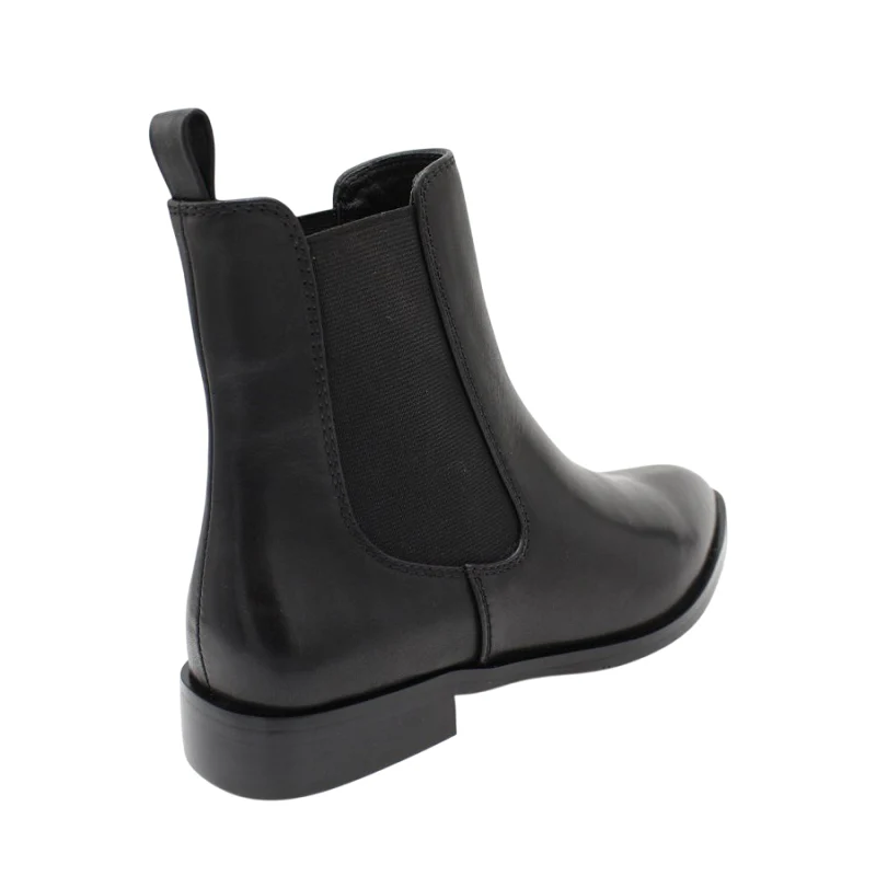 Botines de la marca Itse, modelo NORMA. Exterior en piel color negro con elásticos a los lados. Interior en piel. Botines Itse con punta lápiz. Suela plana de goma. Estos botines Itse NORMA son perfectos para faldas, pantalones y vestidos. Disfrútalos!