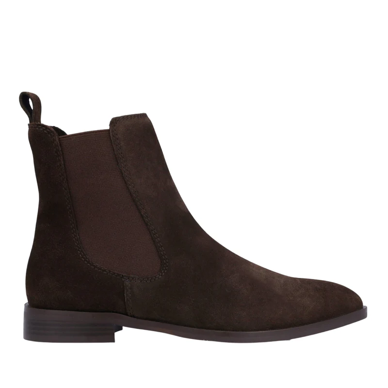Botines de la marca Itse, modelo NORMA. Exterior en ante color marrón con elásticos a los lados. Interior en piel color marrón. Botines Itse con punta lápiz. Suela plana de goma. Estos botines Itse NORMA son ideales para ti!