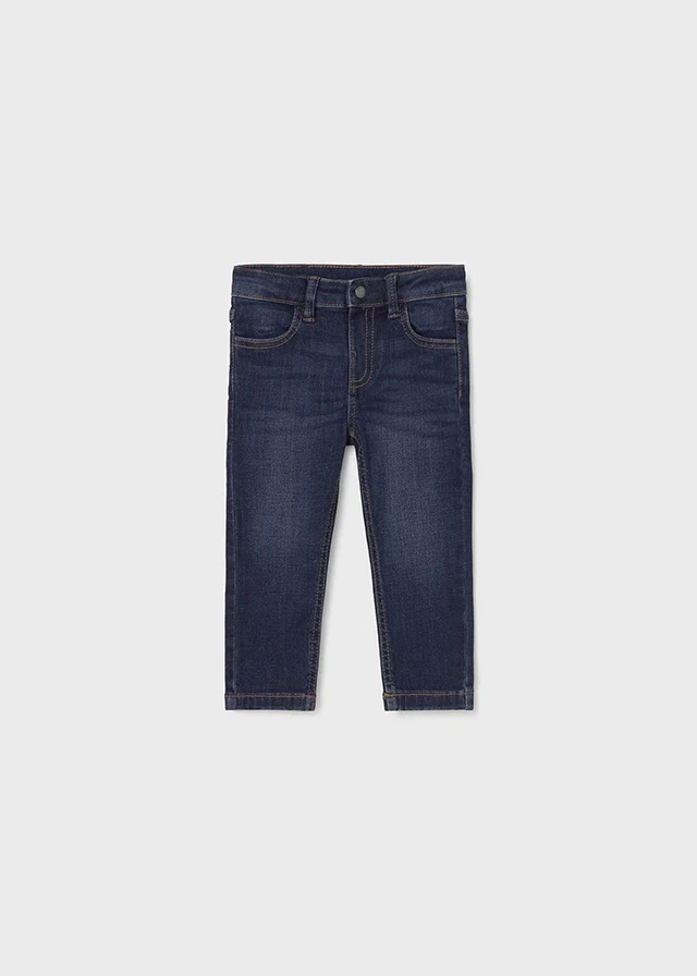 ¡Basicos jeans slim fit en color obscuro! Cierre con un único botón, bragueta simulada para seguridad de los niños, elástico ajustable en la cintura con botones en el interior para mayor ajuste, diseño con múltiples bolsillos.