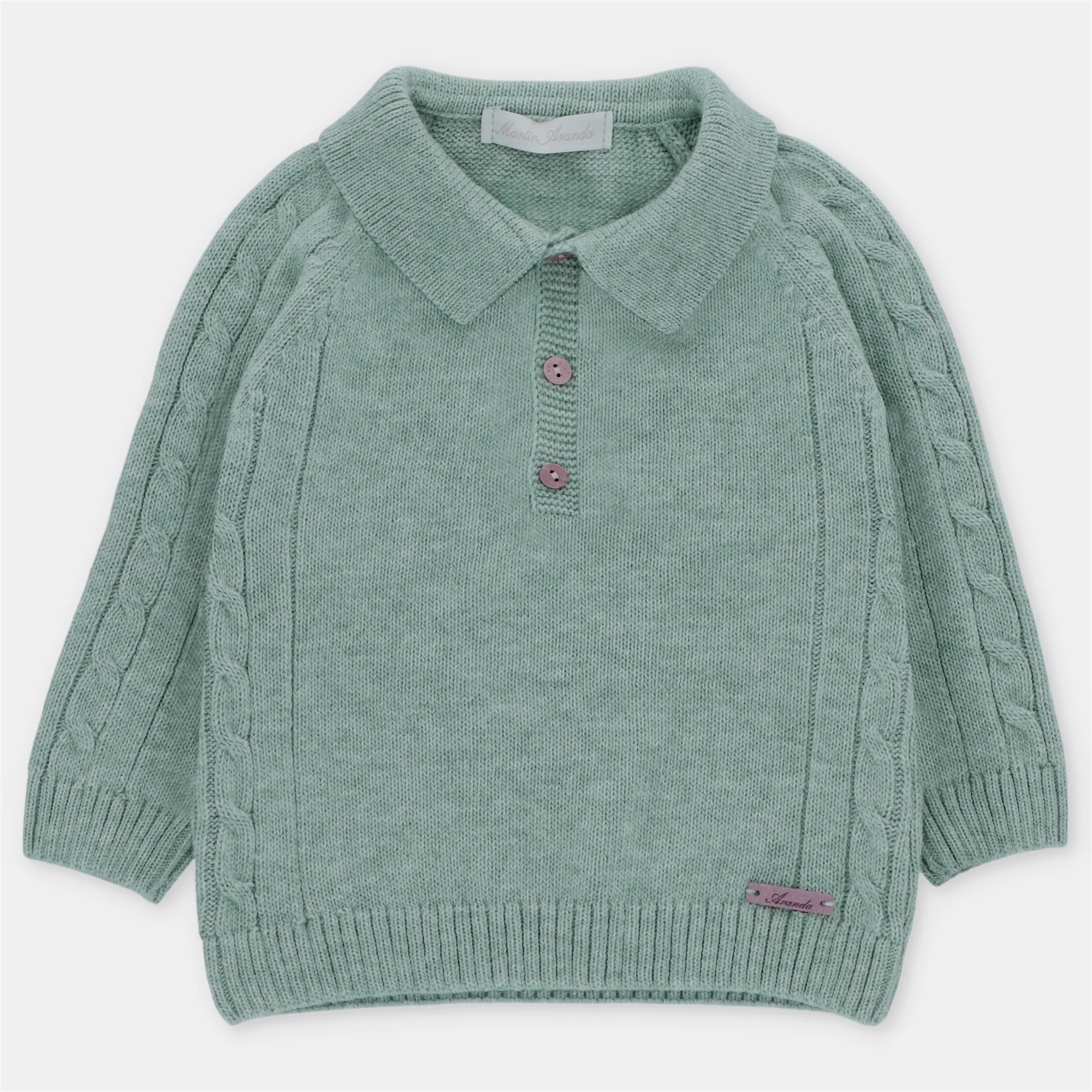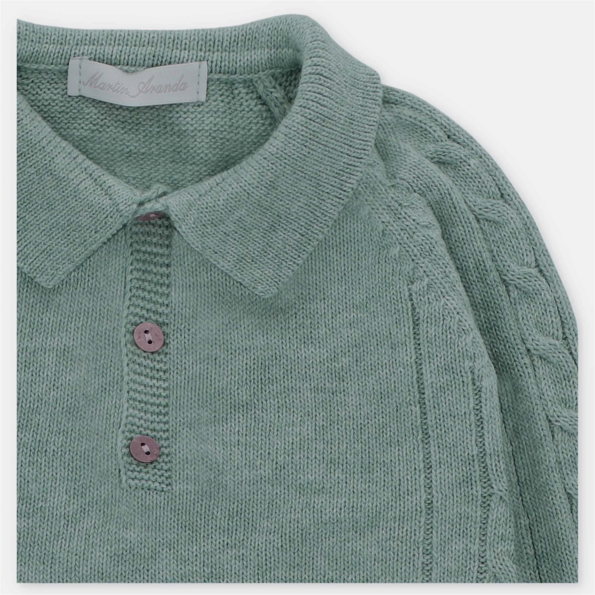 ¡Divina polo de tela tipo sueter ligero en color verde militar! De manga larga, cuello camisero y botones delanteros para facilitar su puesta.