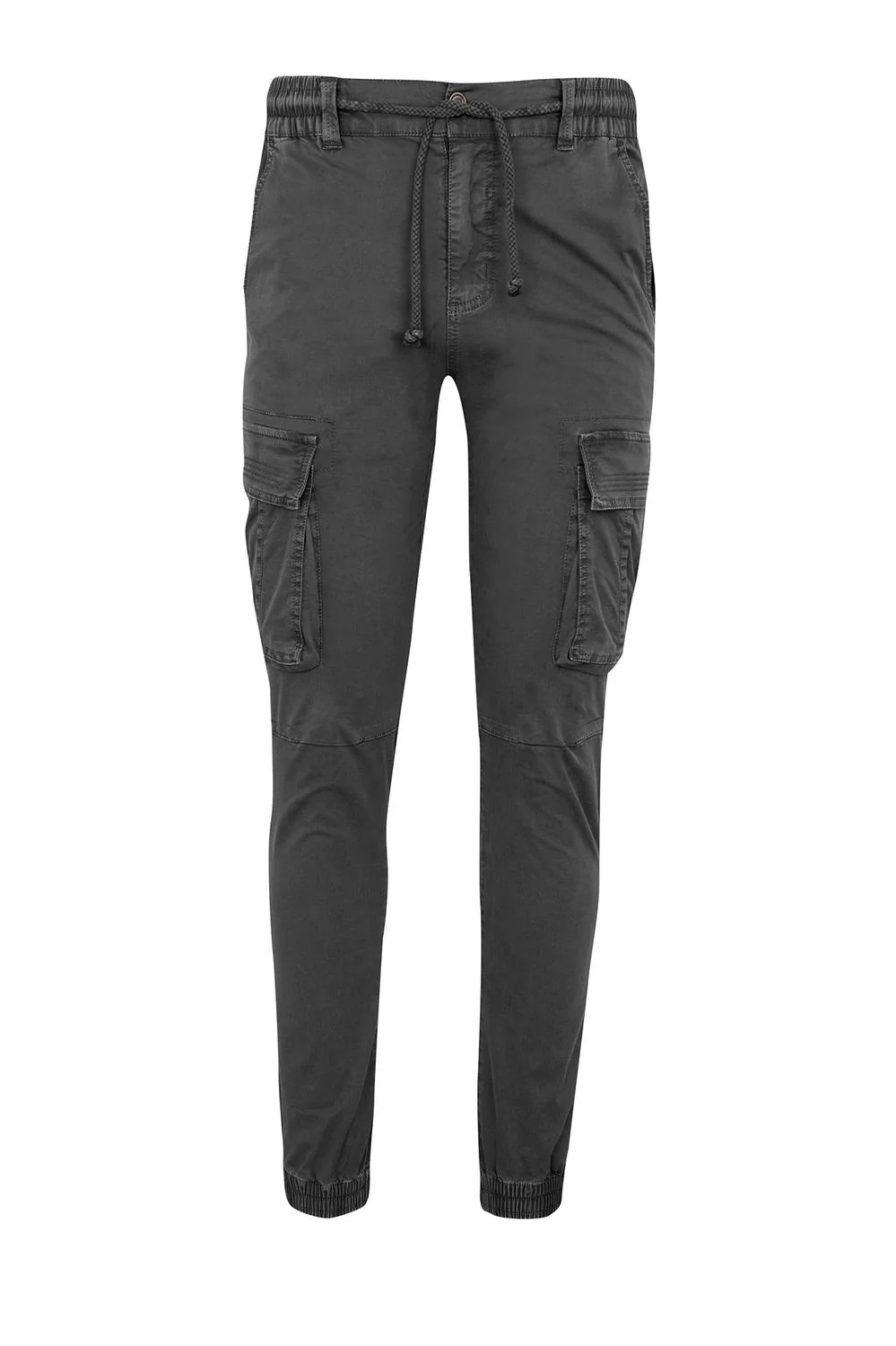 Jogger con elástico en cintura, botón a contraste, múltiples bolsillos funcionales, cierre decorativo y elástico en tobillos. Código de producto 68-0052