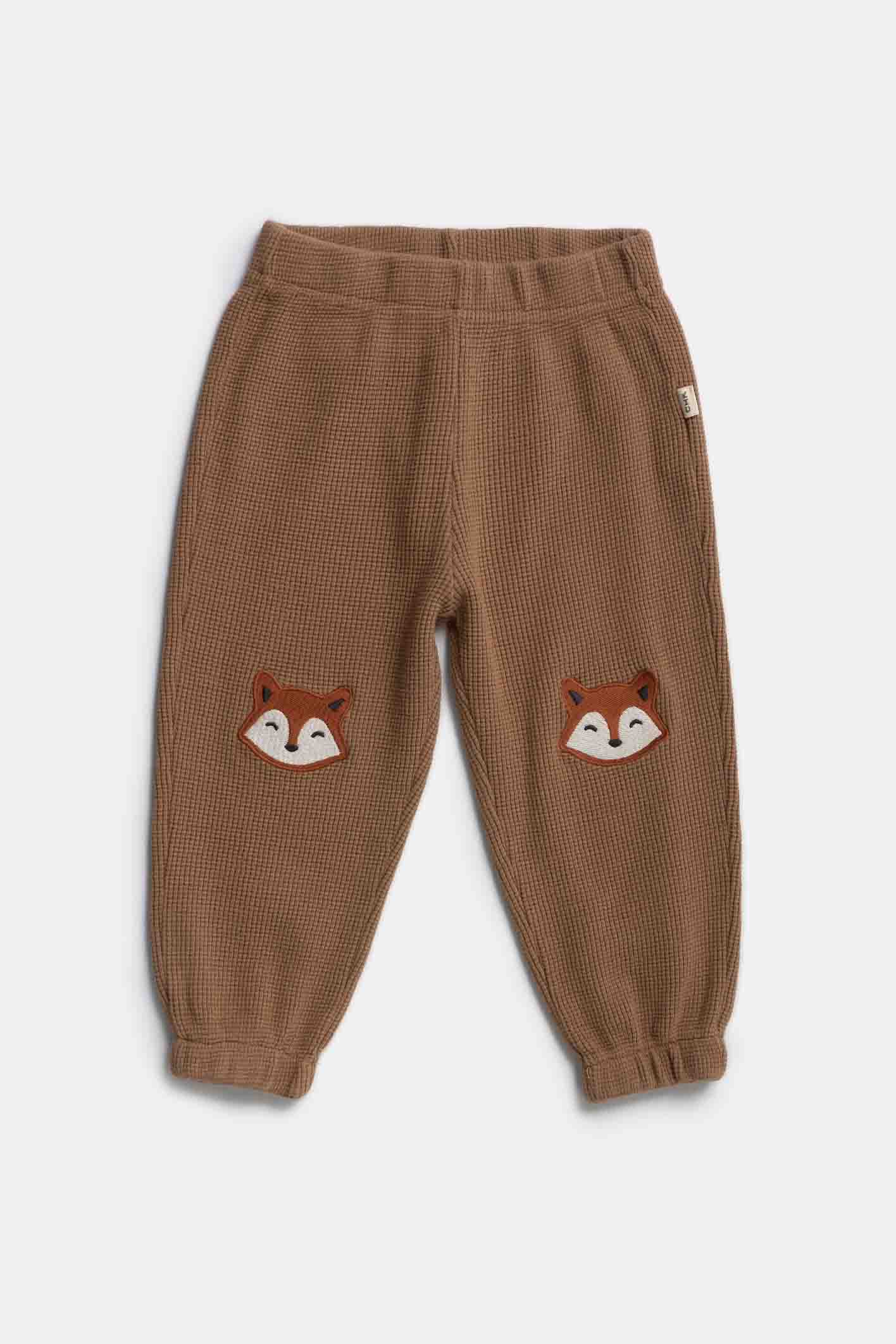Nuestro Jogging Fox tiene elástico en la cintura, puños ajustables, cordón de ajuste, paneles y aplique bordado en las piernas.