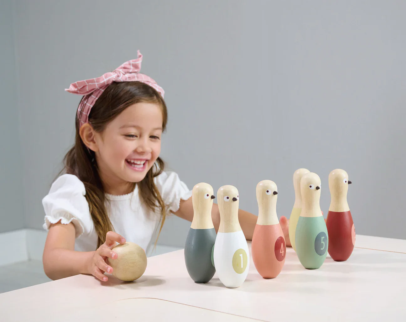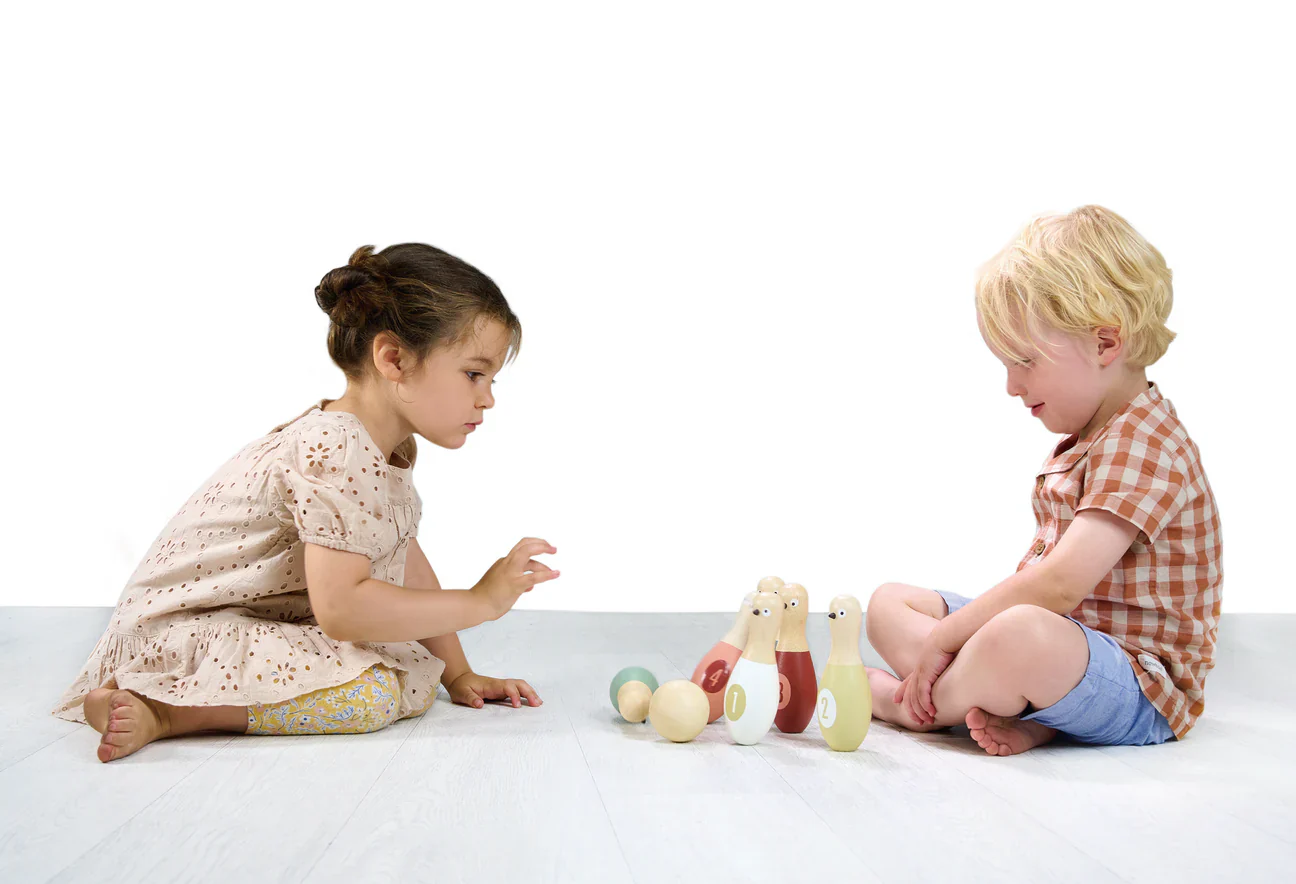 ¡Disfruta de momentos inolvidables en familia con nuestro juego de boliche de madera sustentable! ¡Su diseño compacto y portátil, con una práctica bolsa de viaje, permite llevarlo a cualquier lugar! El set incluye 6 bolos con ilustraciones de palomas de distintos colores y puntuación numérica. Ideal para jugar en interiores o exteriores, este juego fomenta la coordinación, la toma de turnos y la aritmética básica, proporcionando diversión y aprendizaje para todos.