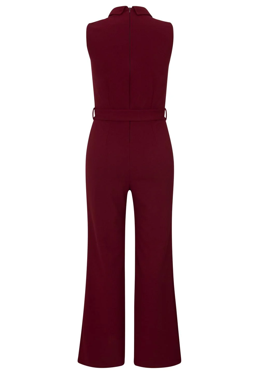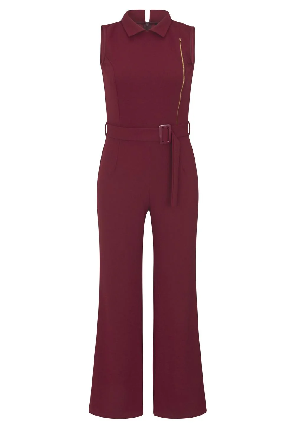 - Jumpsuit con cuello, cierre decorativo frontal, cinturón ajustable y pantalón largo con corte recto.