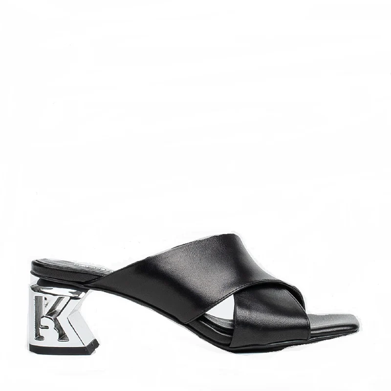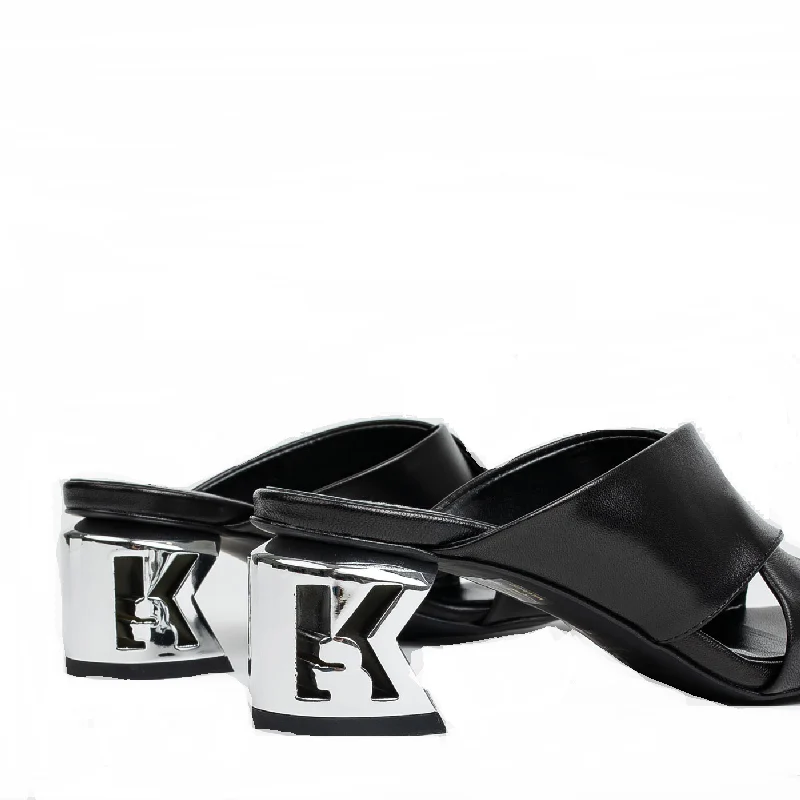 Sandalias negras con logotipo en el tacón
