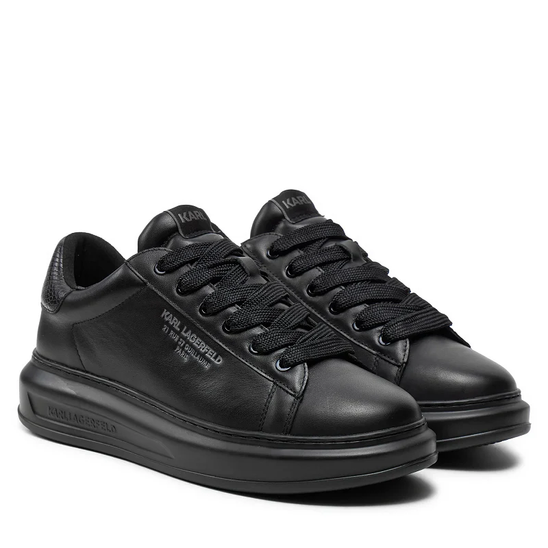 Sneakers de hombre de la marca Karl Lagerfeld en color negro. Están echas de cuero y el material de la suela es de alta calidad. Tienen la punta redonda y el cierre es con cordones textiles.