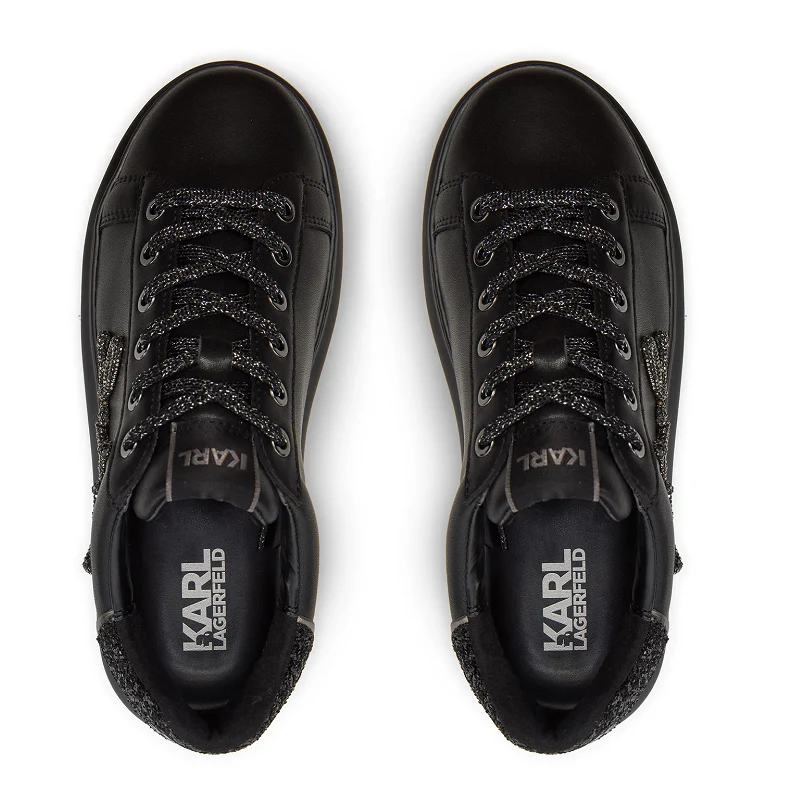 Sneakers de mujer de la marca Karl Lagerfeld, modelo KL62510G en color negro. El interior del zapato está echa de polipiel y la caña de cuero natural. La punta es redonda y el cierre es con cordones.
