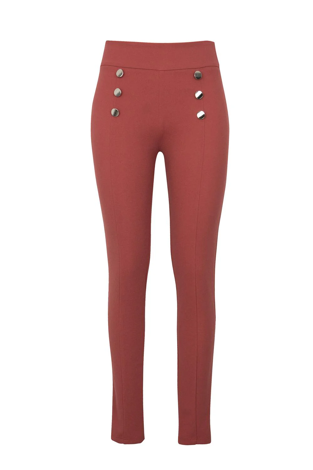 Legging con pretina ancha, elástico en cintura, alforzas y botonadura decorativa. 46-0165