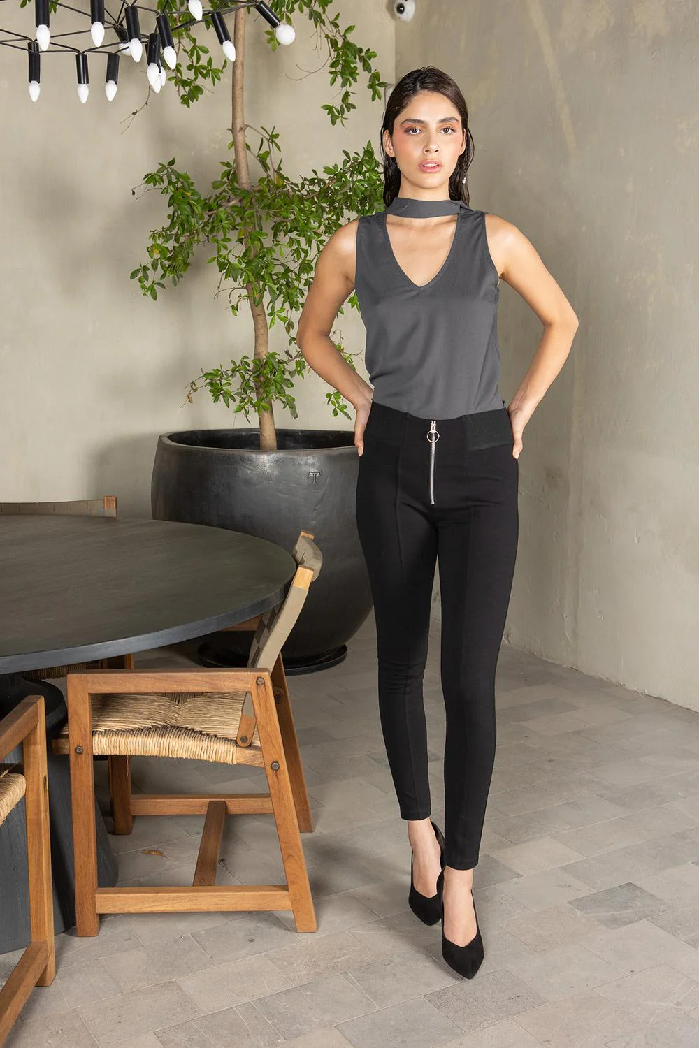 Legging con elástico en cintura, cortes y cierre decorativos. 46-0173