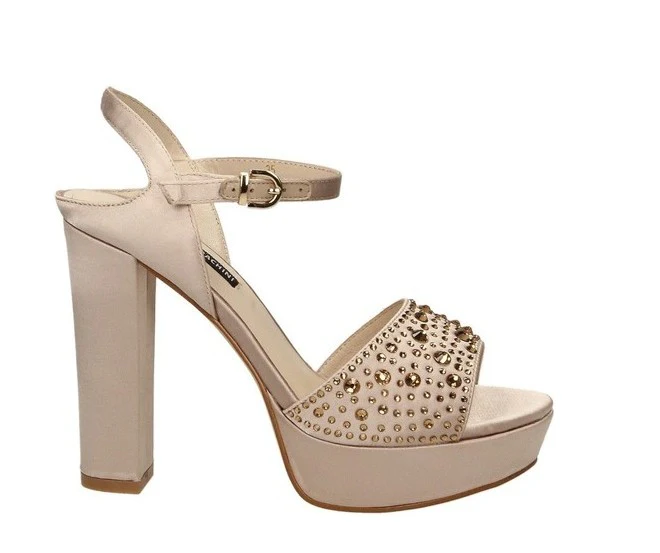 Estos zapatos de tacón de la marca Luciano Barachini son ideales para combinar con cualquiero look de fiesta o ceremonia. De color champanàcon una tira alrededor del tobillo y con decoraciones brillantes. Un tacón ancho que ofrece más comodidad al andar.