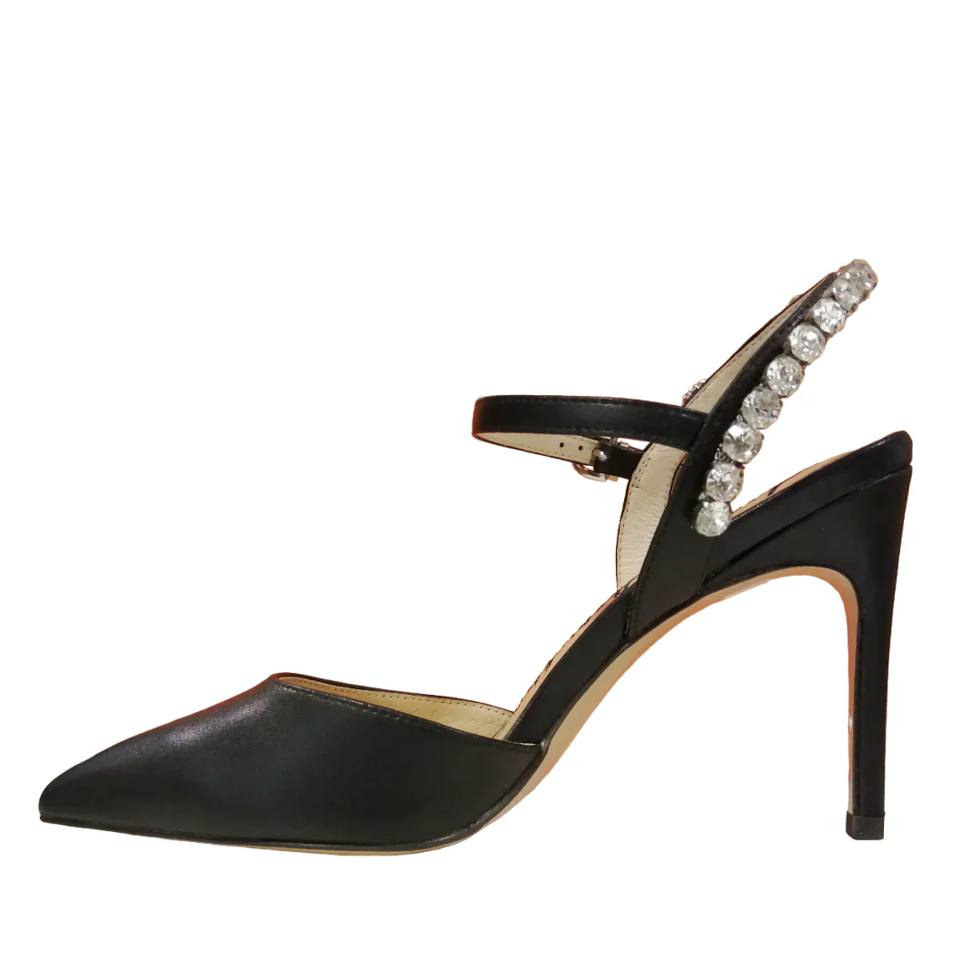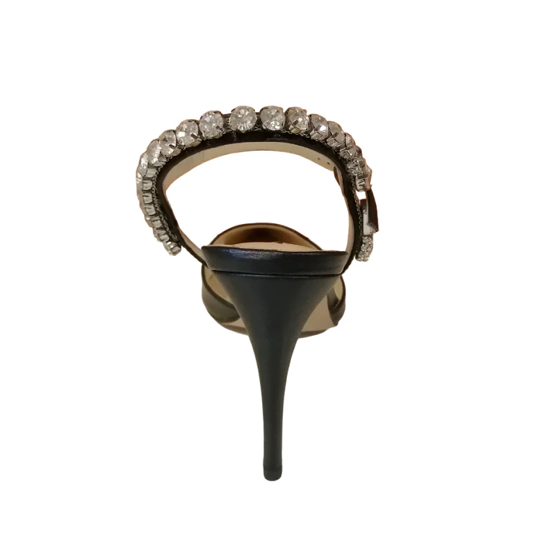 Zapatos de salón destalonados con pedreria en la cinta del talón. Fabricados en piel