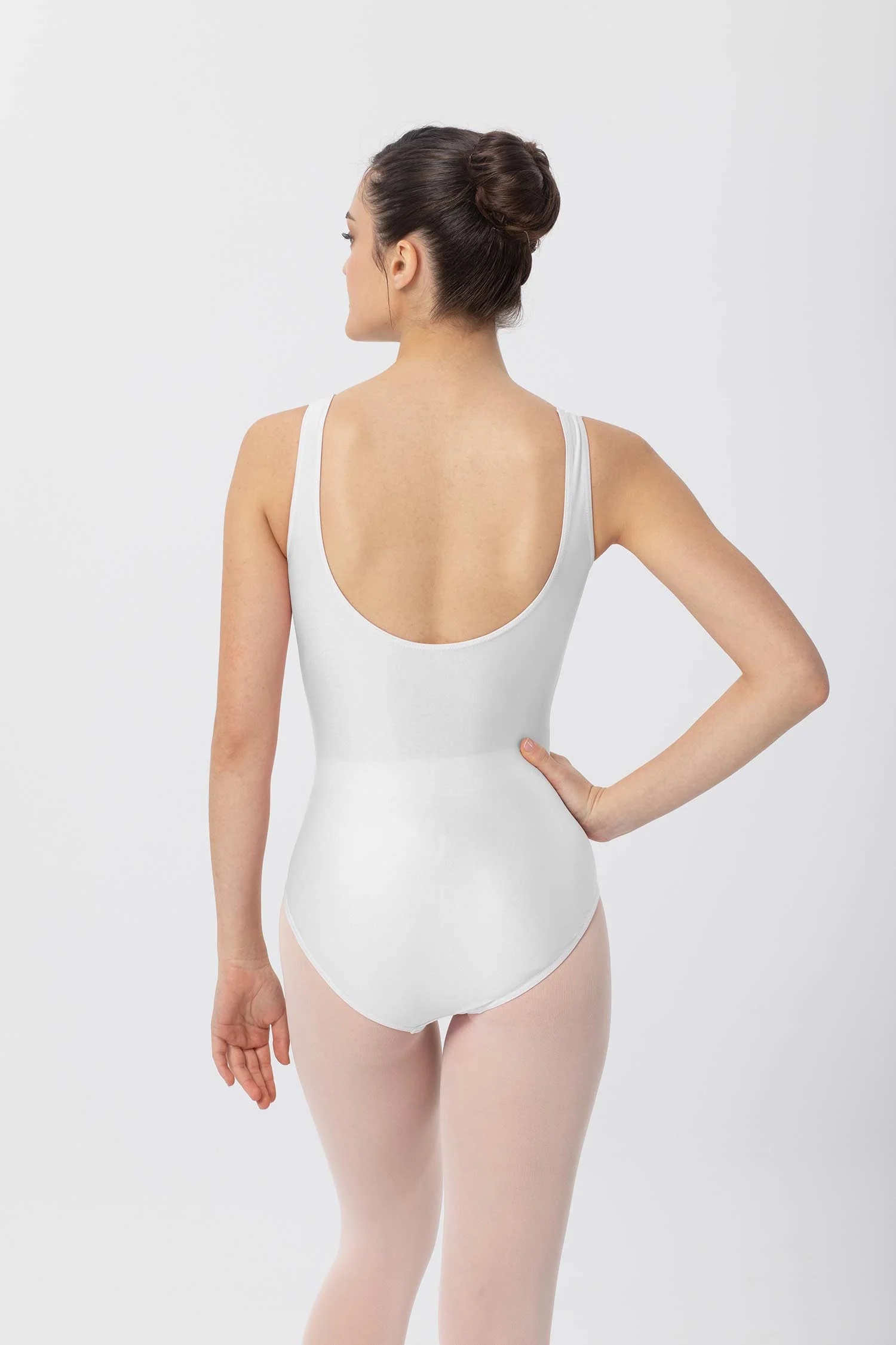 Body básico con tirante ancho estilo camiseta, con escote redondo delante y espalda redonda muy escotada. Estilo ideal para bailarinas, gimnastas, patinadoras y para todo tipo de danza. Maillot elástico, cómodo y ajustable al cuerpo.