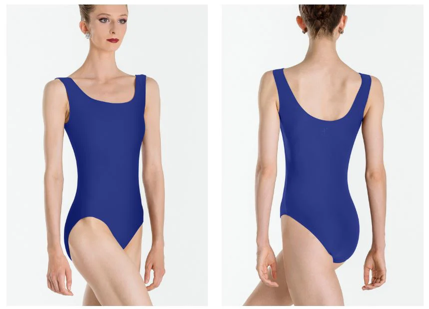 El modelo EMELINE de Wear Moi es perfecto para clase de danza. Ideal para uniformes y para el día a día. Un básico que no puede faltar. De tirante ancho con el escote redondo y espalda alta y redonda.