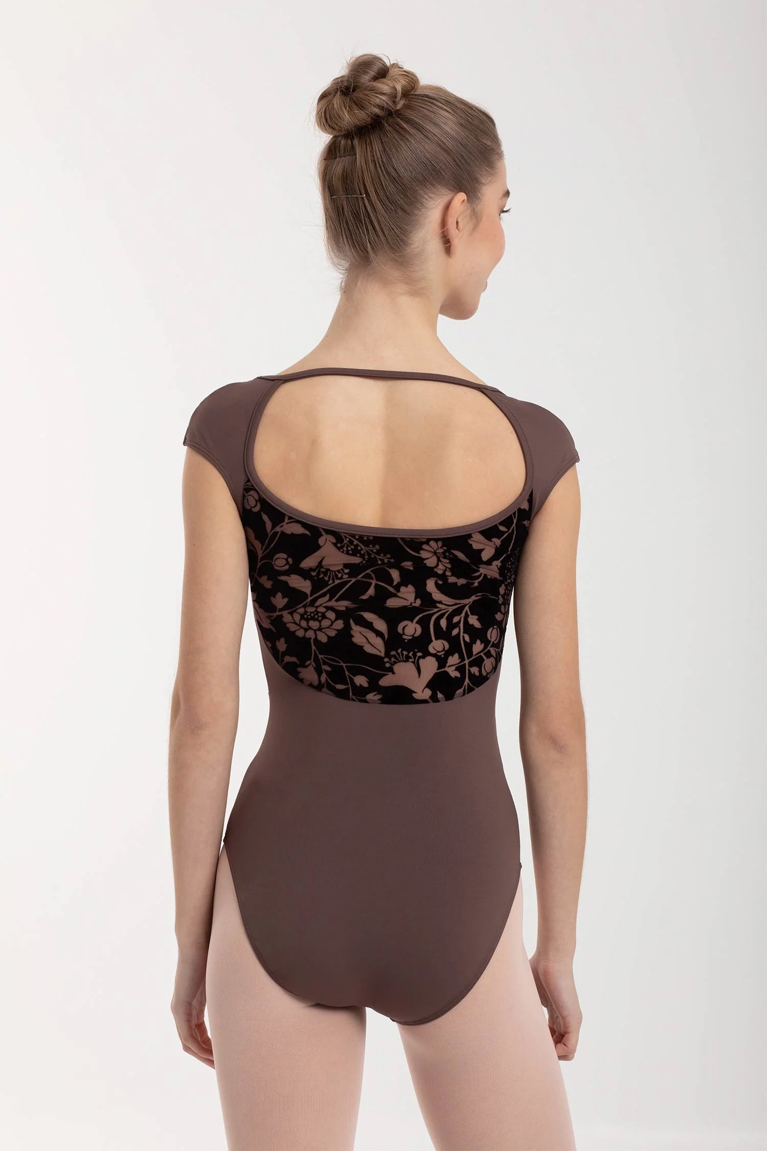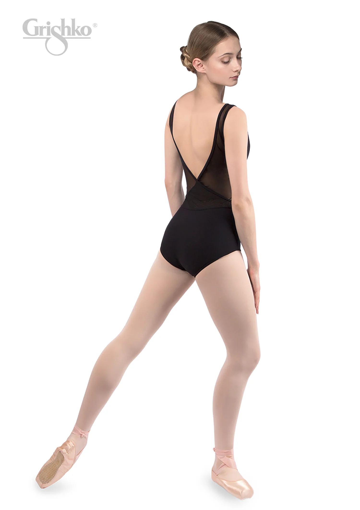 Maillot ballet de manga americana de Intermezzo. Tiene el detalle de red floreada en el escote y espalda