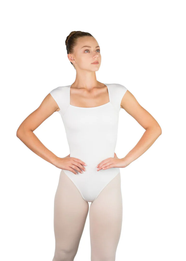 Maillot básico de manga corta con escote recto y espalda abierta. El modelo Antonella de Ballet Rosa es elegante y sencillo. Todo en microfibra. Es un básico elegante que sirve para todo tipo de danza. Cómodo y sencillo. La espalda en forma de ojo permite que queden al aire las escápulas.