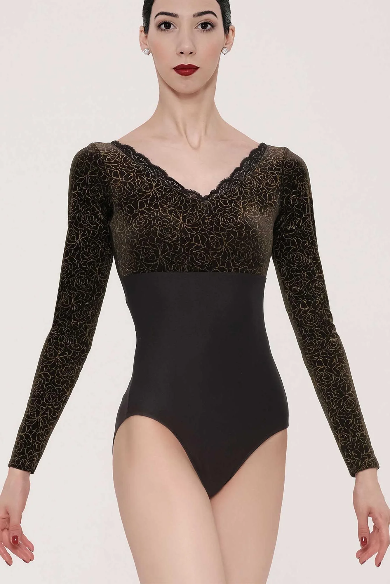 Materiales: Microfibra – Terciopelo estampado – Tulle elástico.