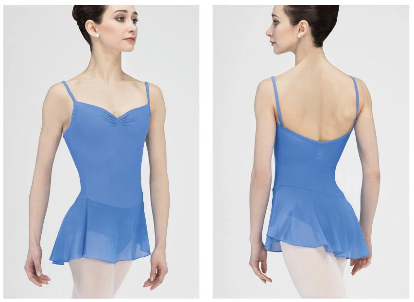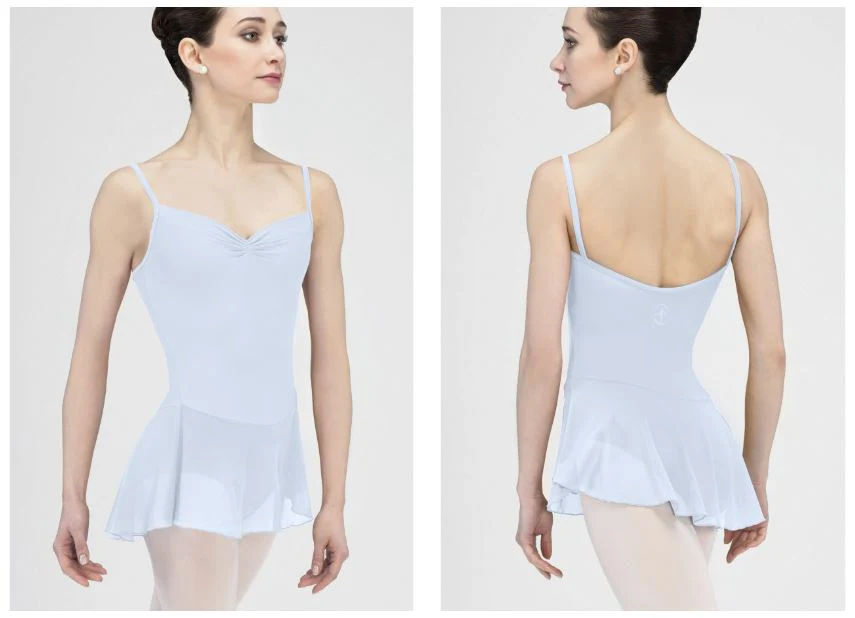 El modelo BALLERINE de Wear Moi es perfecto para clase de danza. Ideal para uniformes y para el día a día. Un básico que no puede faltar. De tirante fino con el escote corazón fruncido y espalda media en forma de U. Lleva faldita de tulle incorporada del mismo color del maillot.