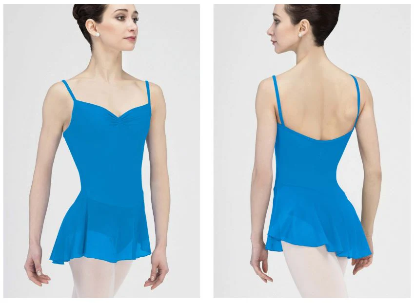 El modelo BALLERINE de Wear Moi es perfecto para clase de danza. Ideal para uniformes y para el día a día. Un básico que no puede faltar. De tirante fino con el escote corazón fruncido y espalda media en forma de U. Lleva faldita de tulle incorporada del mismo color del maillot.