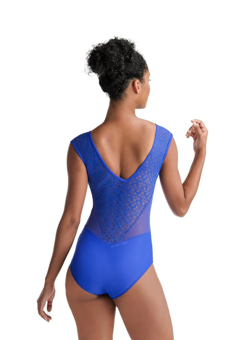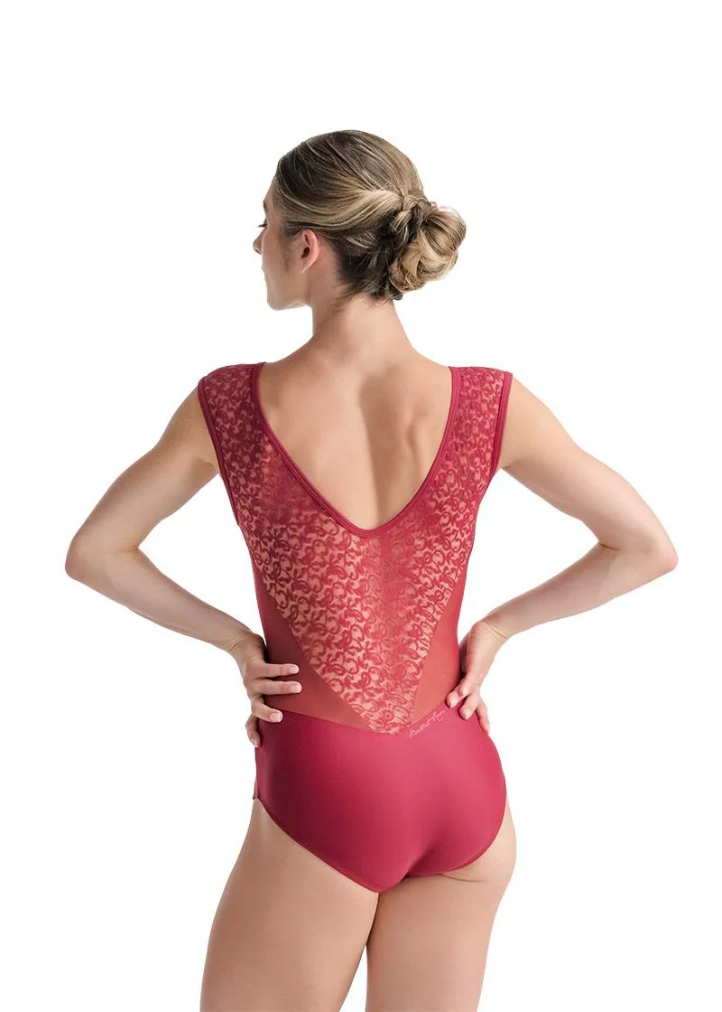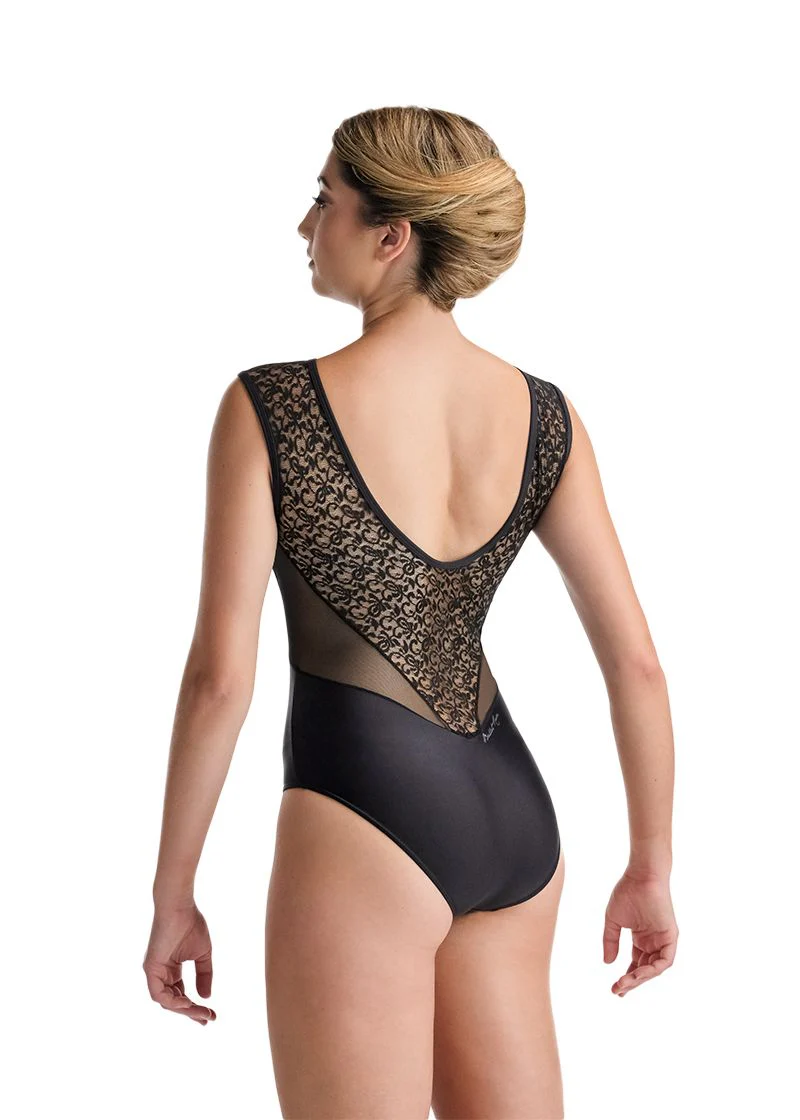 Maillot sin mangas con detalles geométricos. El modelo DELIA de Ballet Rosa destaca por su diseño mezclando tulle y bordado. Con figuras geométricas. Espalda cerrada.