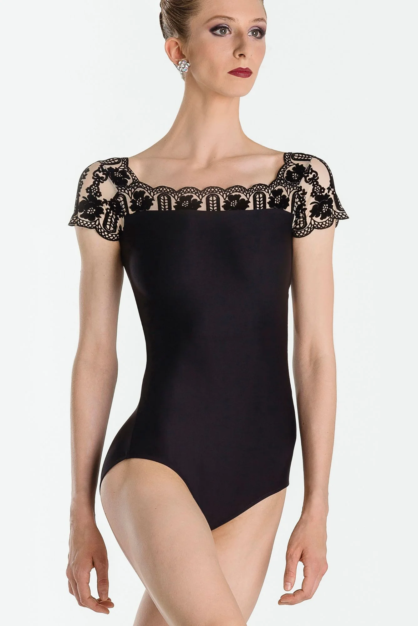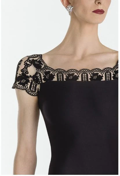 El modelo EMMA de Wear Moi es ideal para realizar cualquier tipo de danza. Tiene el escote recto con cuello barco y manga corta. Se ajusta perfectamente al cuerpo. Forrado en la parte delantera. Con detalle de encaje negro sobre fondo nude. La espalda abierta resaltando el diseño.