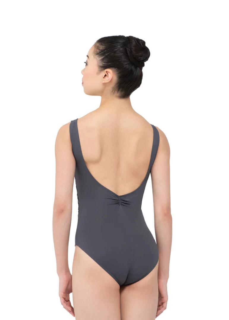 Maillot de tirantes con detalle en el pecho. El modelo Lorrelle es el último modelo de la colección Louvre de Ballet Rosa.La parte delantera en forma de V estiliza el torso. La espalda tiene un escote medio también en forma de V fruncido en la parte final.