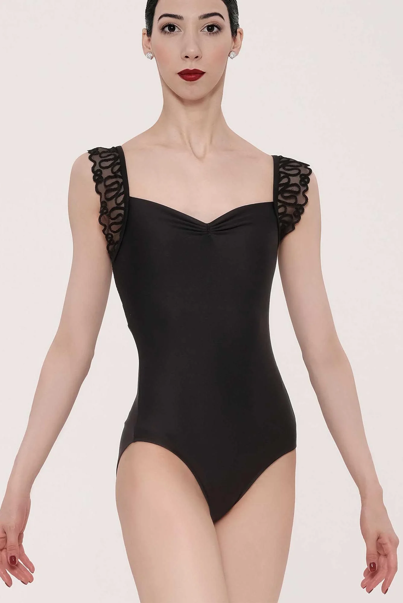 El modelo SWEETPEA de Wear Moi está cortado en una microfibra elastano combinado con tul elástico bordado. Tiene tirantes anchos y elegante espalda de tul para realzar tus hombros y espalda. Sus acabados están festoneados en el borde. Este maillot de danza tiene un escote fruncido en el pecho y está totalmente forrado en la parte delantera.