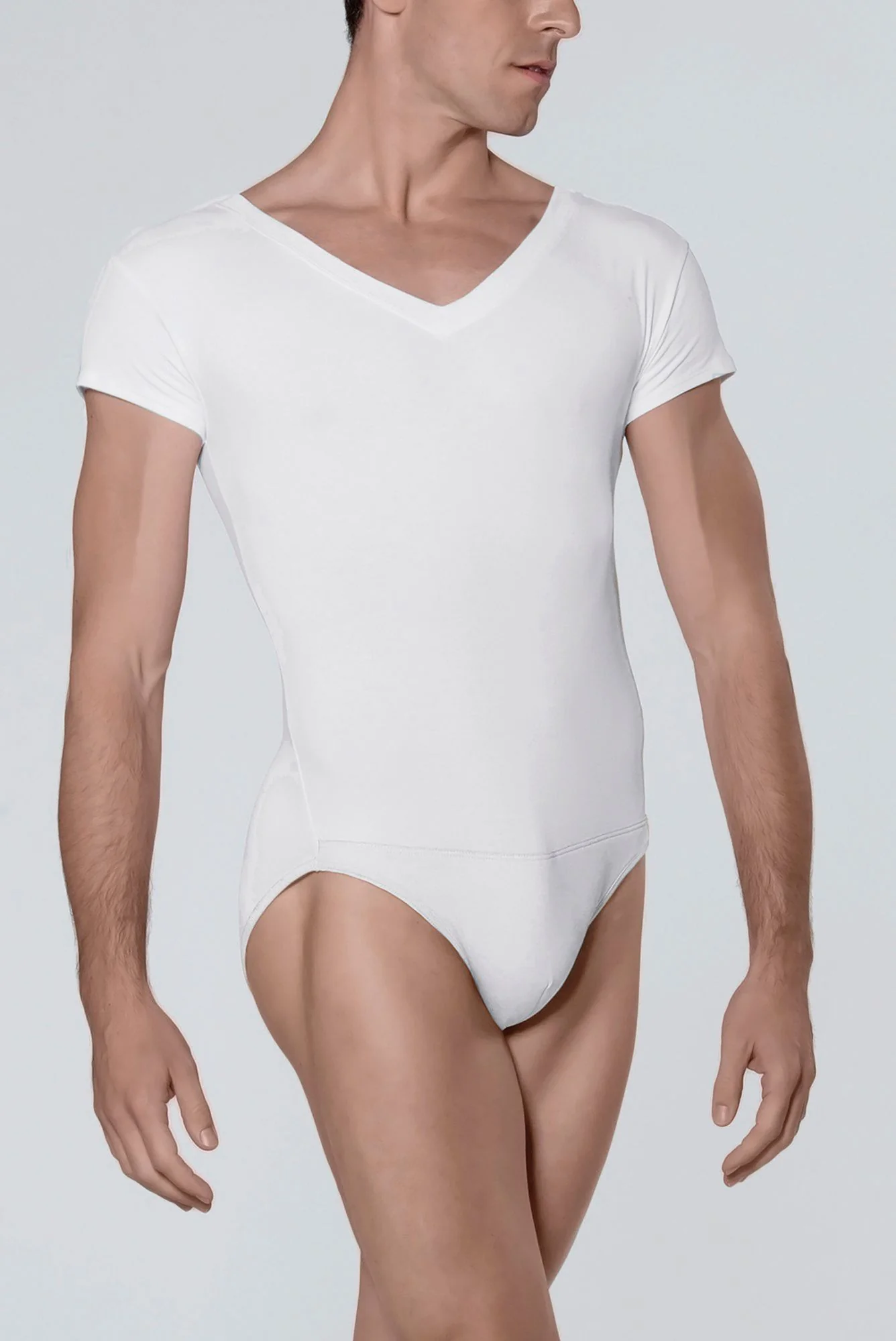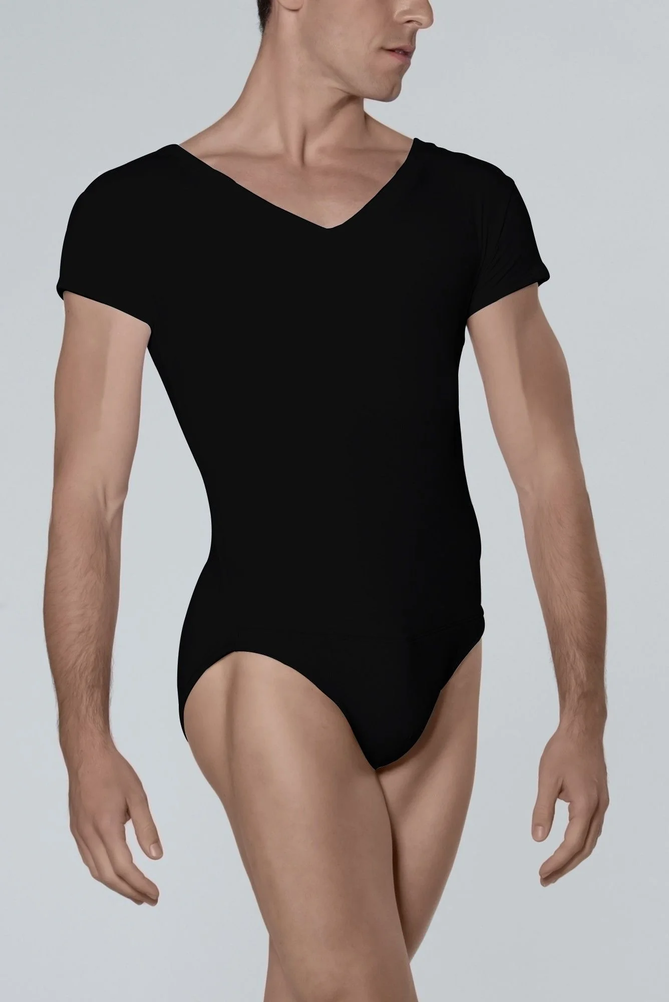 El modelo ALTAN de Wear Moi es perfecto para clase de danza. Maillot masculino de danza. De manga corta con escote pico. Lleva suspensor calzoncillo incorporado. Una pieza de uniforme.