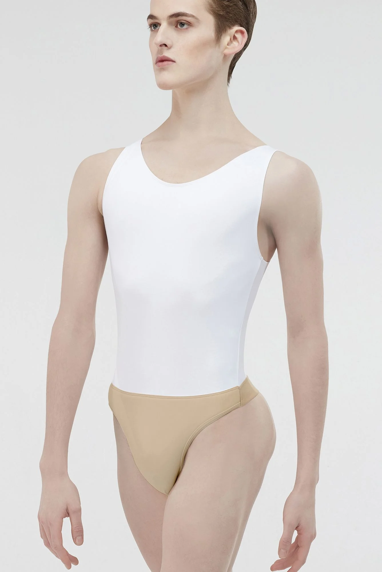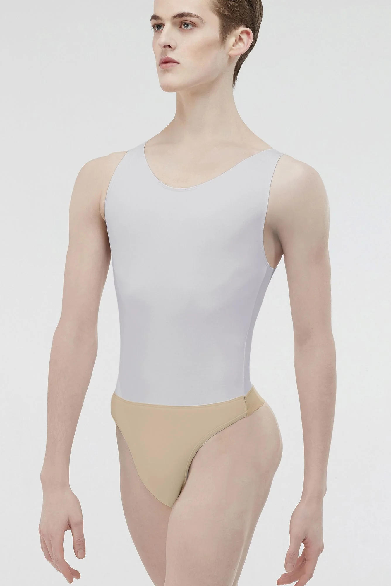 El modelo VERSAO de Wear Moi es perfecto para clase de danza. Maillot masculino de danza. De tirantes ancho con cuello redondo. Lleva suspensor tanga incorporado. Una pieza de uniforme.
